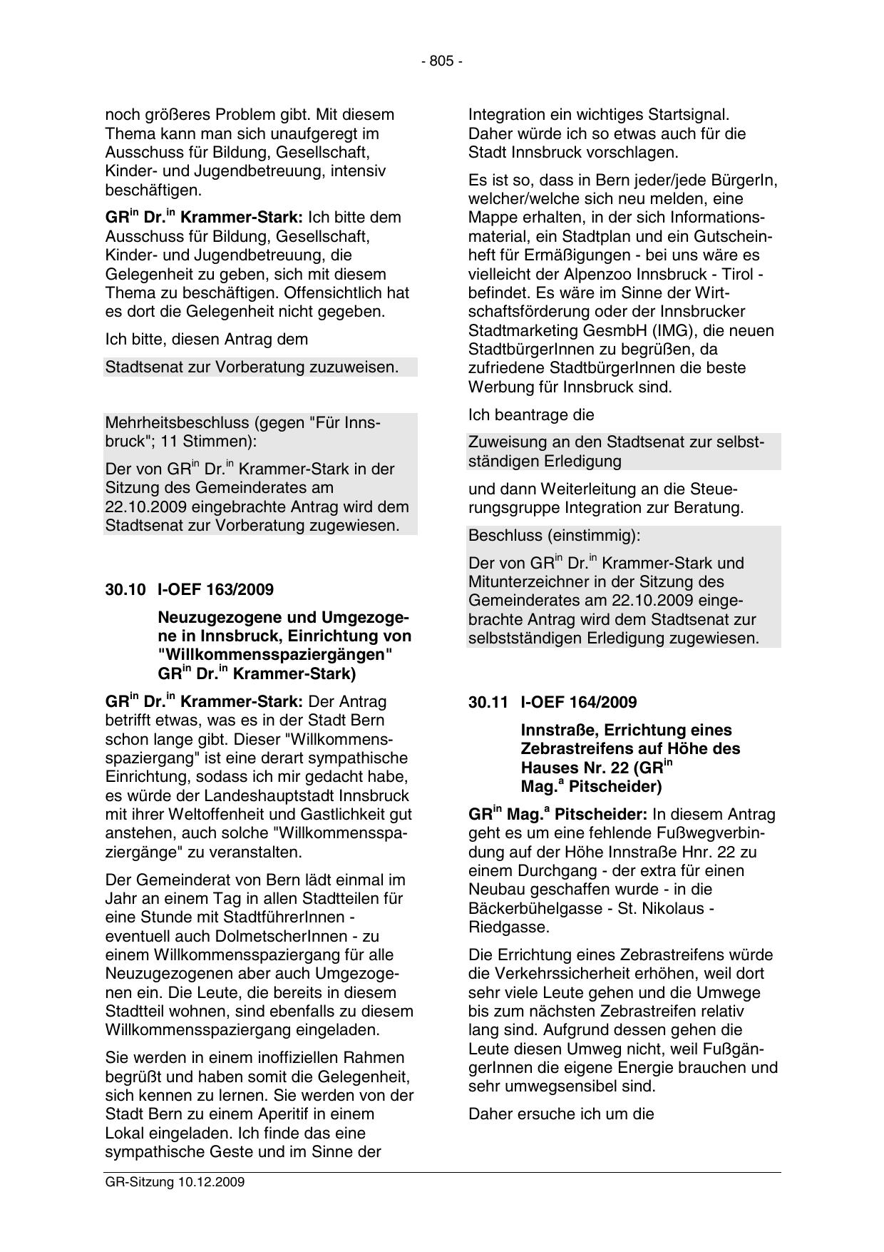 Gemeinderates am 22.10.2009 eingebrachte Antrag wird dem Stadtsenat zur