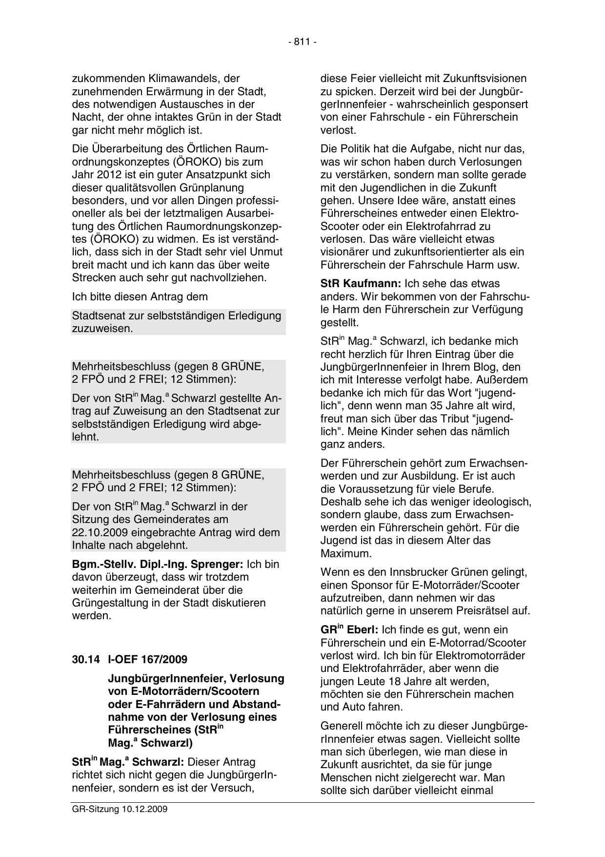 Mehrheitsbeschluss (gegen 8 GRÜNE,