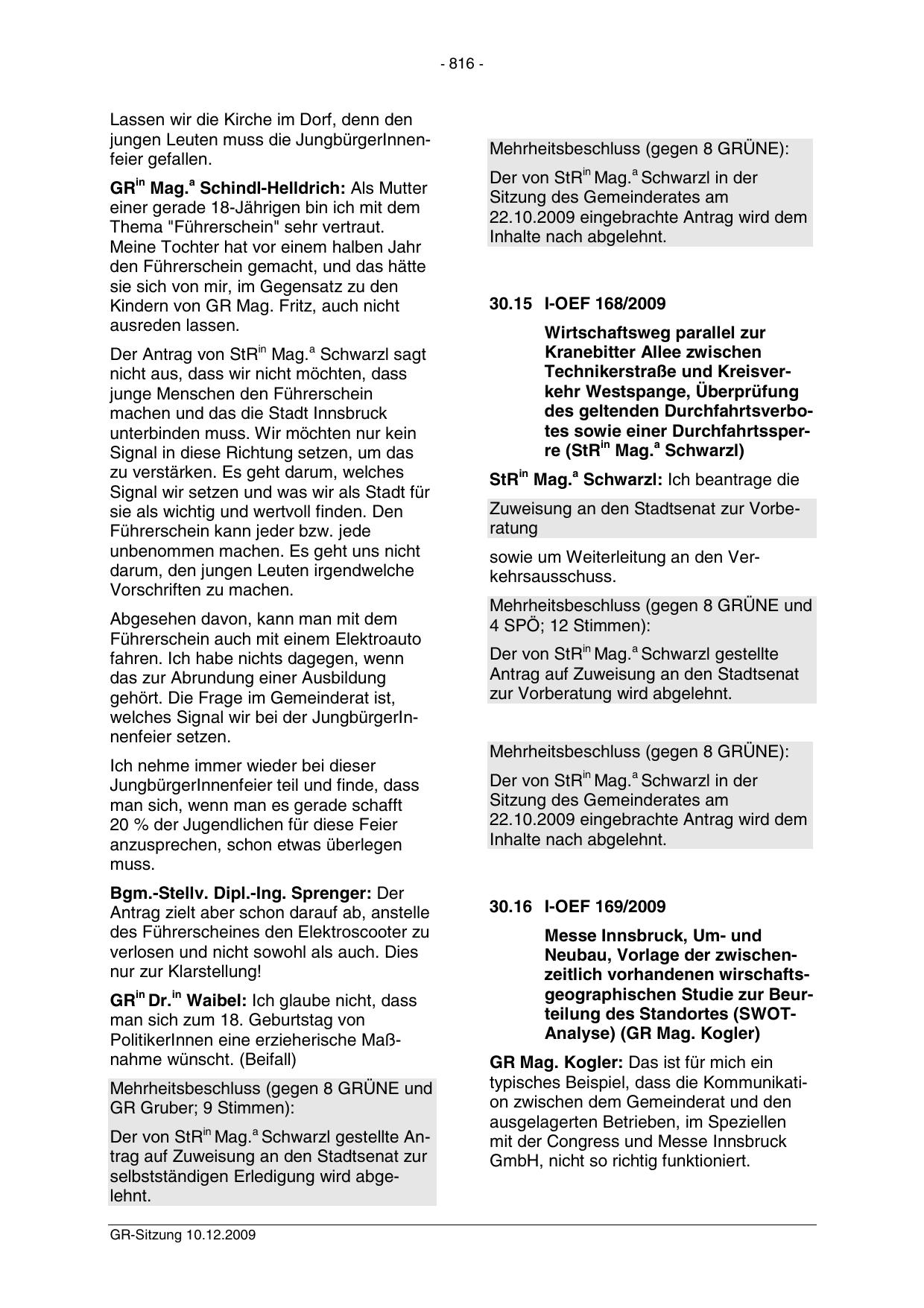 Mehrheitsbeschluss (gegen 8 GRÜNE und