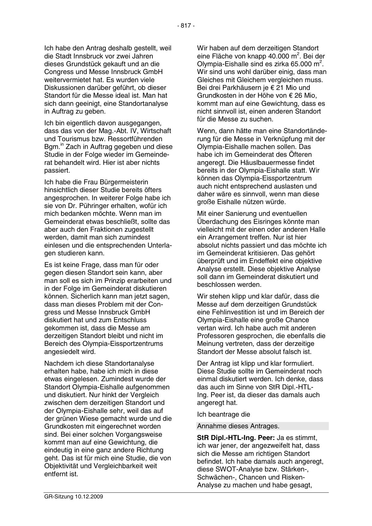 Studie in der Folge wieder im Gemeinderat behandelt wird. Hier ist aber nichts