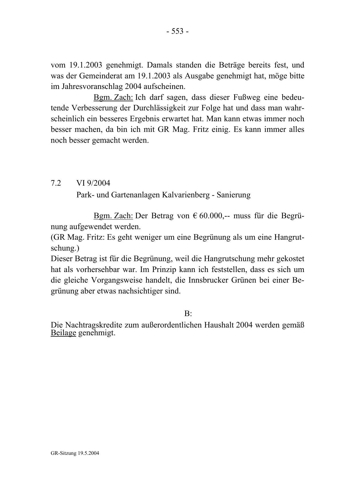 was der Gemeinderat am 19.1.2003 als Ausgabe genehmigt hat, möge bitte