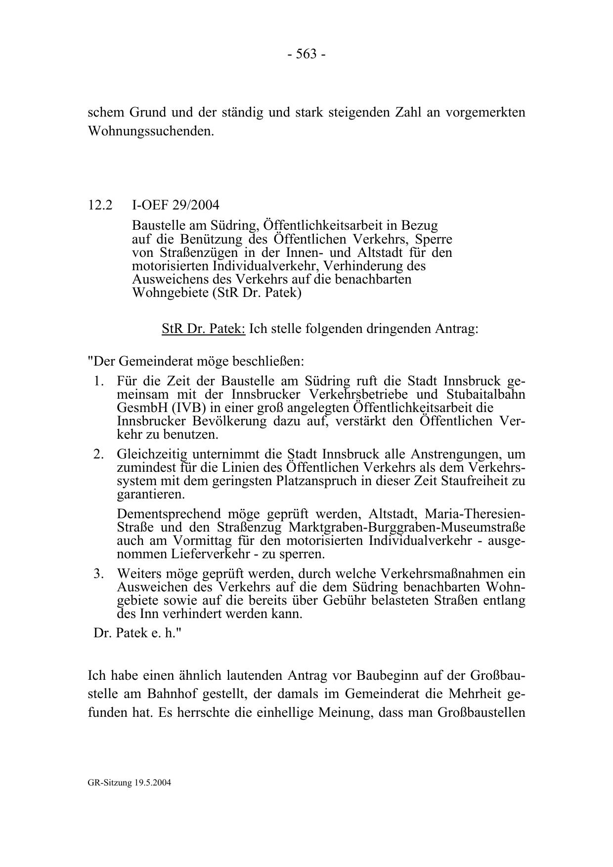 StR Dr. Patek: Ich stelle folgenden dringenden Antrag: