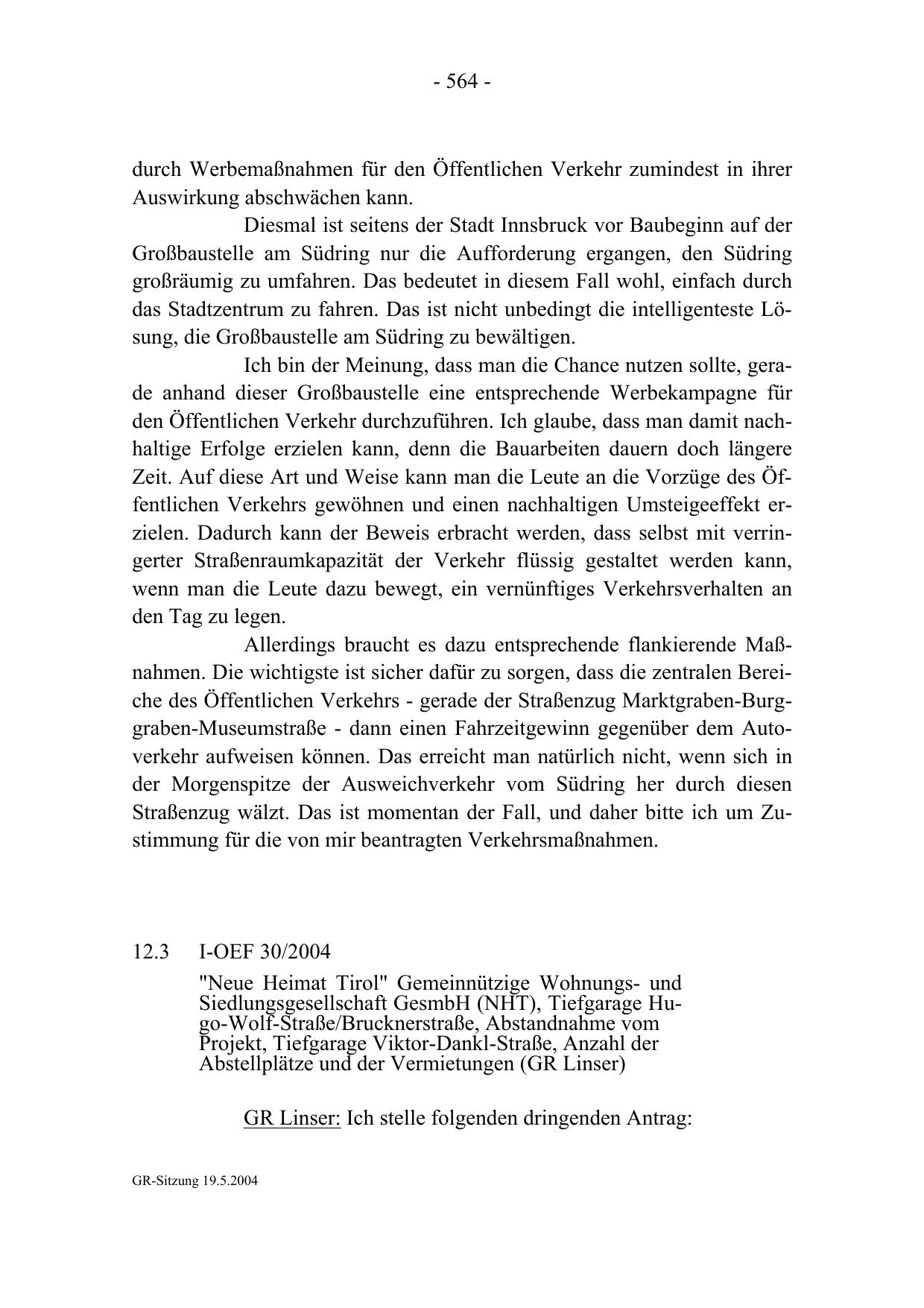 GR Linser: Ich stelle folgenden dringenden Antrag: