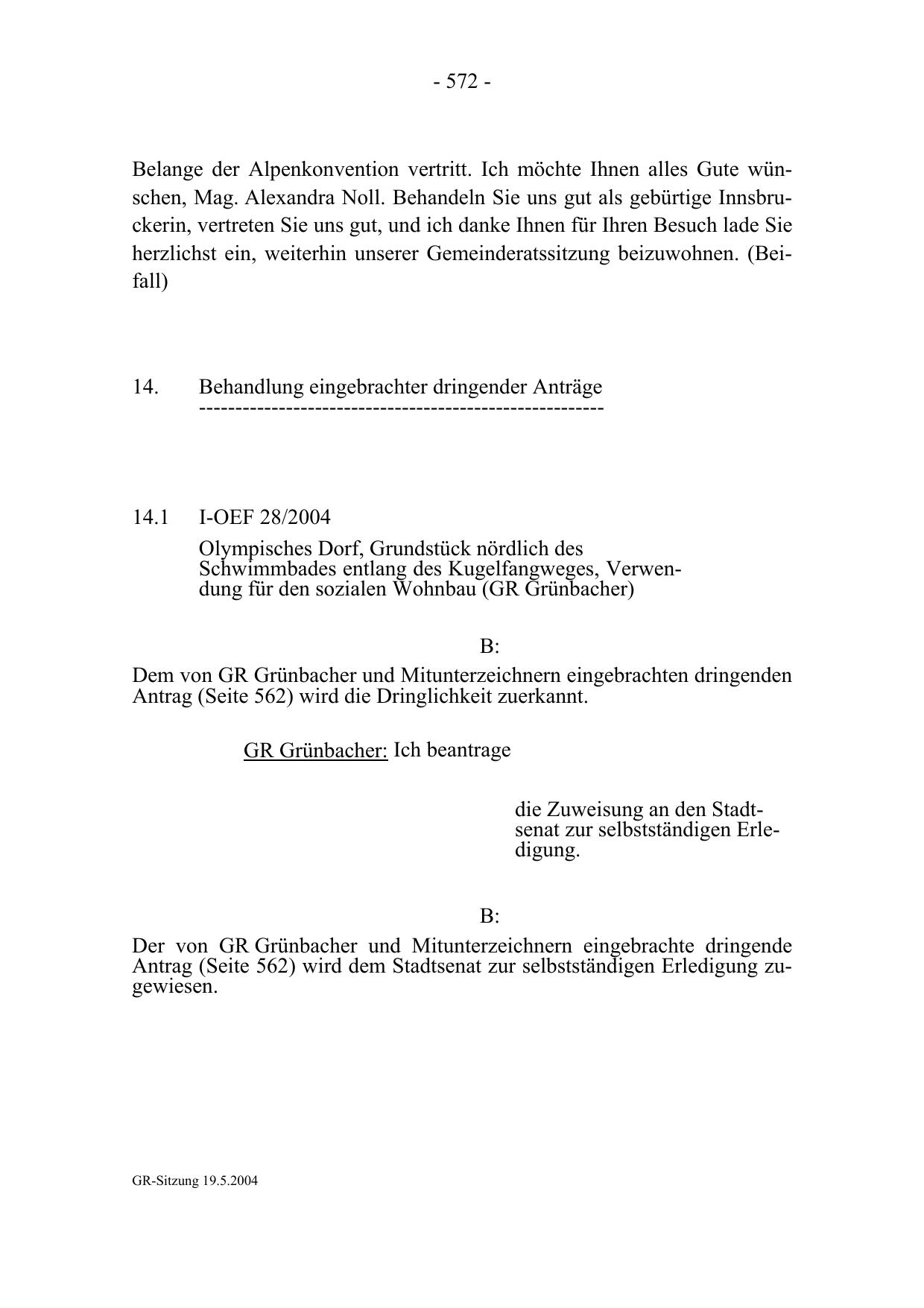Der von GR Grünbacher und Mitunterzeichnern eingebrachte dringende
