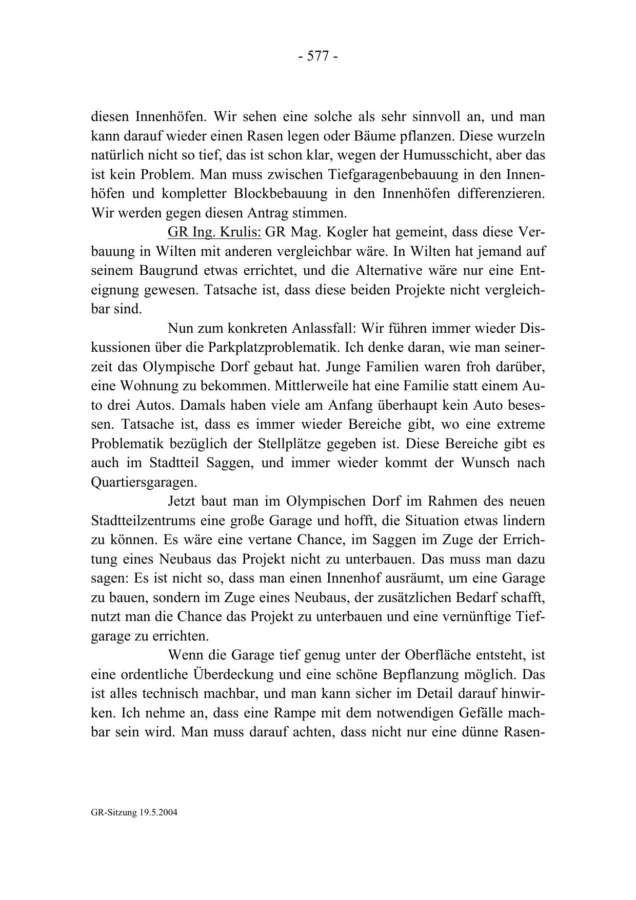 GR Ing. Krulis: GR Mag. Kogler hat gemeint, dass diese Verbauung in Wilten mit anderen vergleichbar wäre. In Wilten hat jemand auf