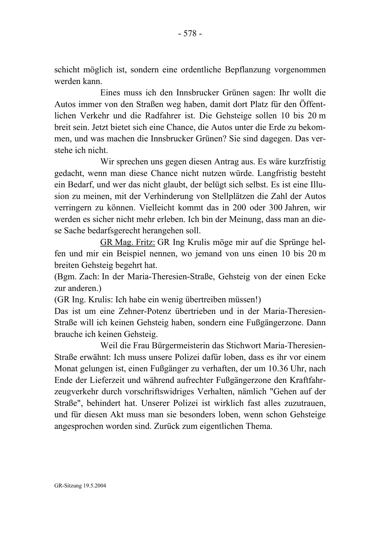 breit sein. Jetzt bietet sich eine Chance, die Autos unter die Erde zu bekommen, und was machen die Innsbrucker Grünen? Sie sind dagegen. Das verstehe ich nicht.