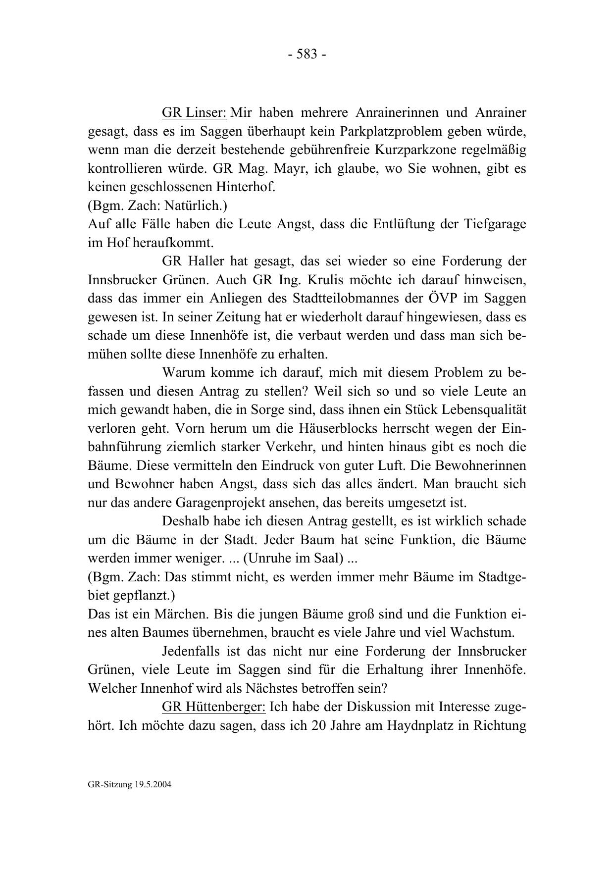 Innsbrucker Grünen. Auch GR Ing. Krulis möchte ich darauf hinweisen,