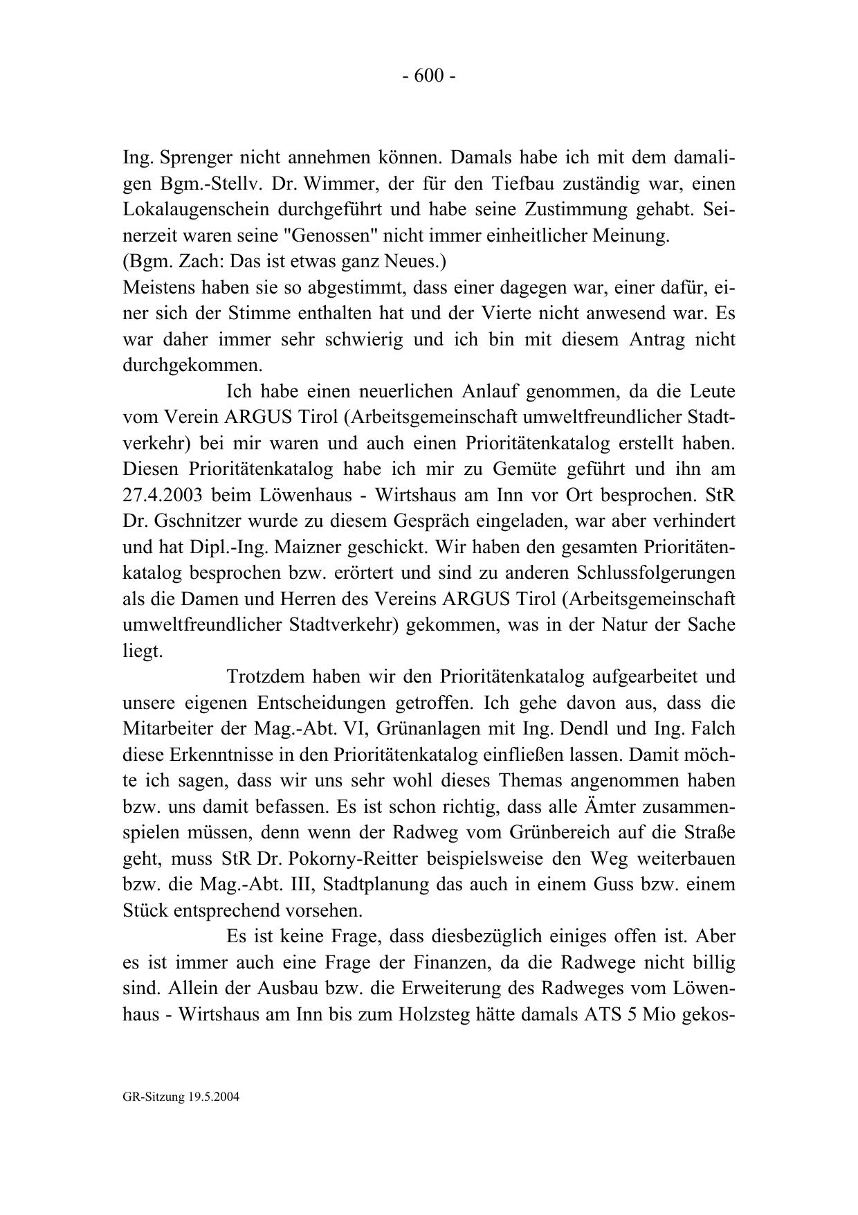 vom Verein ARGUS Tirol (Arbeitsgemeinschaft umweltfreundlicher Stadtverkehr) bei mir waren und auch einen Prioritätenkatalog erstellt haben.
