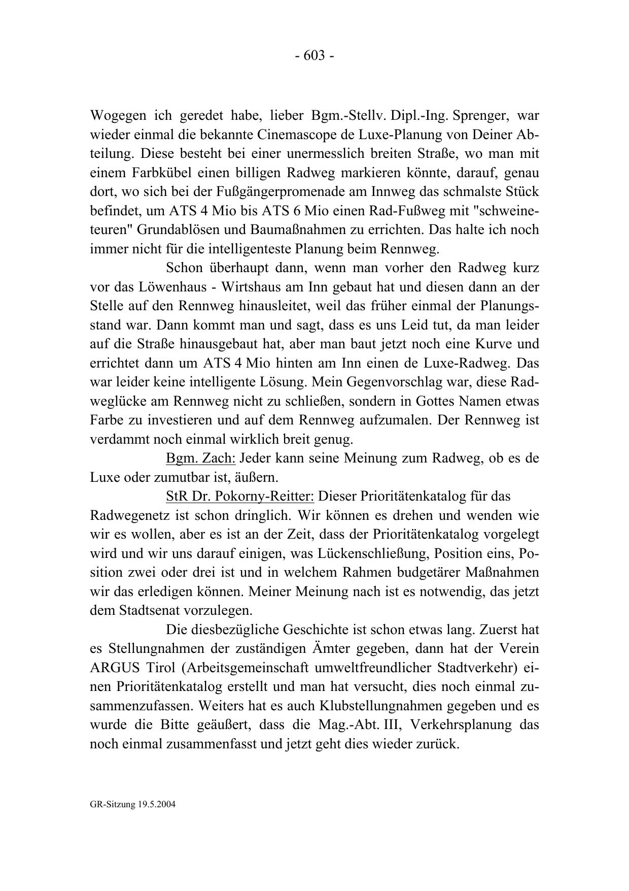 ARGUS Tirol (Arbeitsgemeinschaft umweltfreundlicher Stadtverkehr) einen Prioritätenkatalog erstellt und man hat versucht, dies noch einmal zusammenzufassen. Weiters hat es auch Klubstellungnahmen gegeben und es