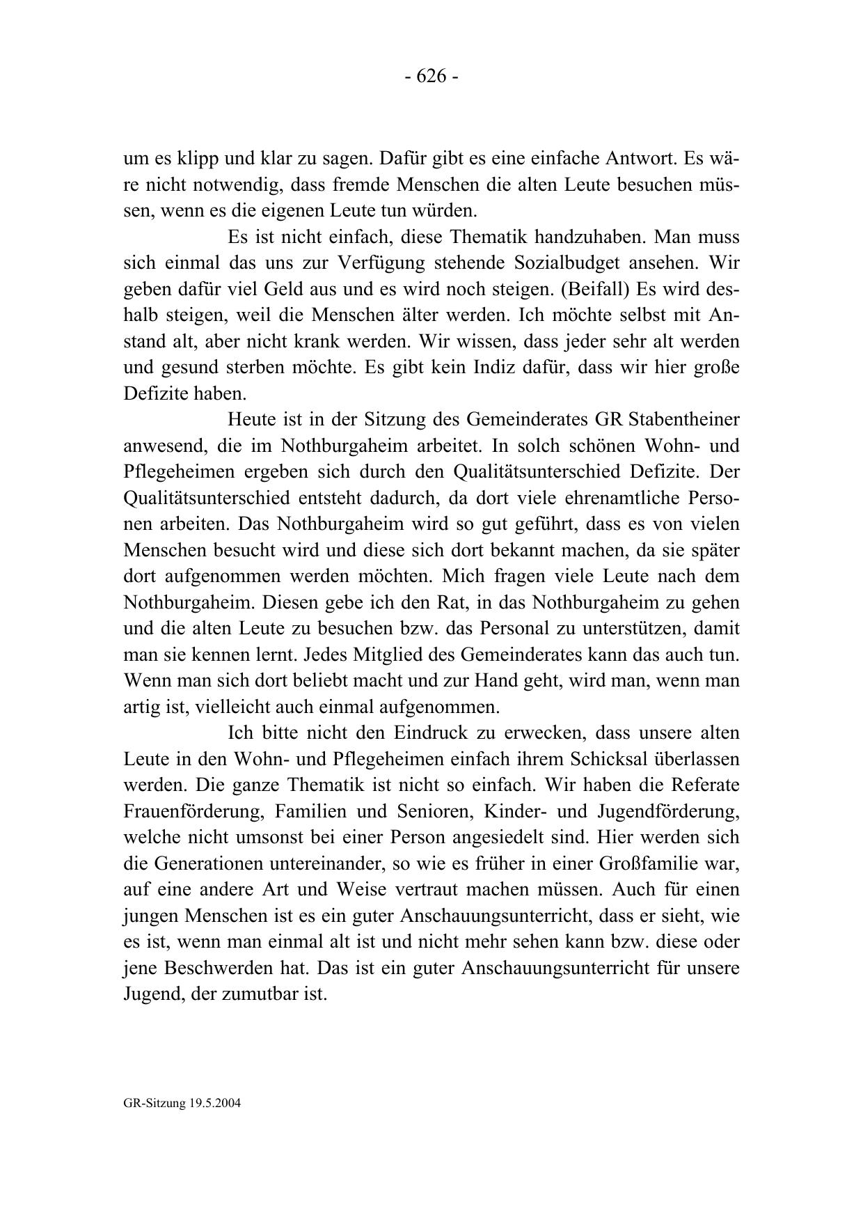 Heute ist in der Sitzung des Gemeinderates GR Stabentheiner