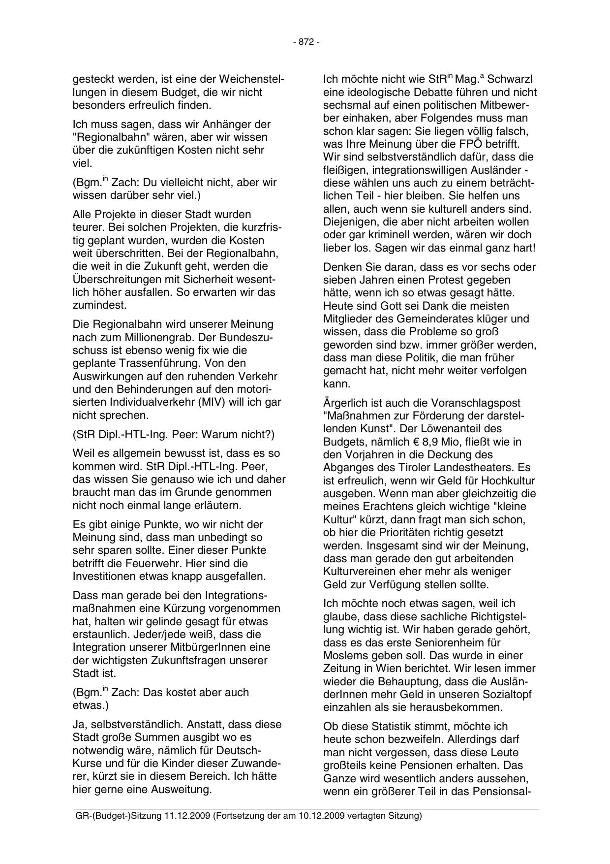 GR-(Budget-)Sitzung 11.12.2009 (Fortsetzung der am 10.12.2009 vertagten Sitzung)