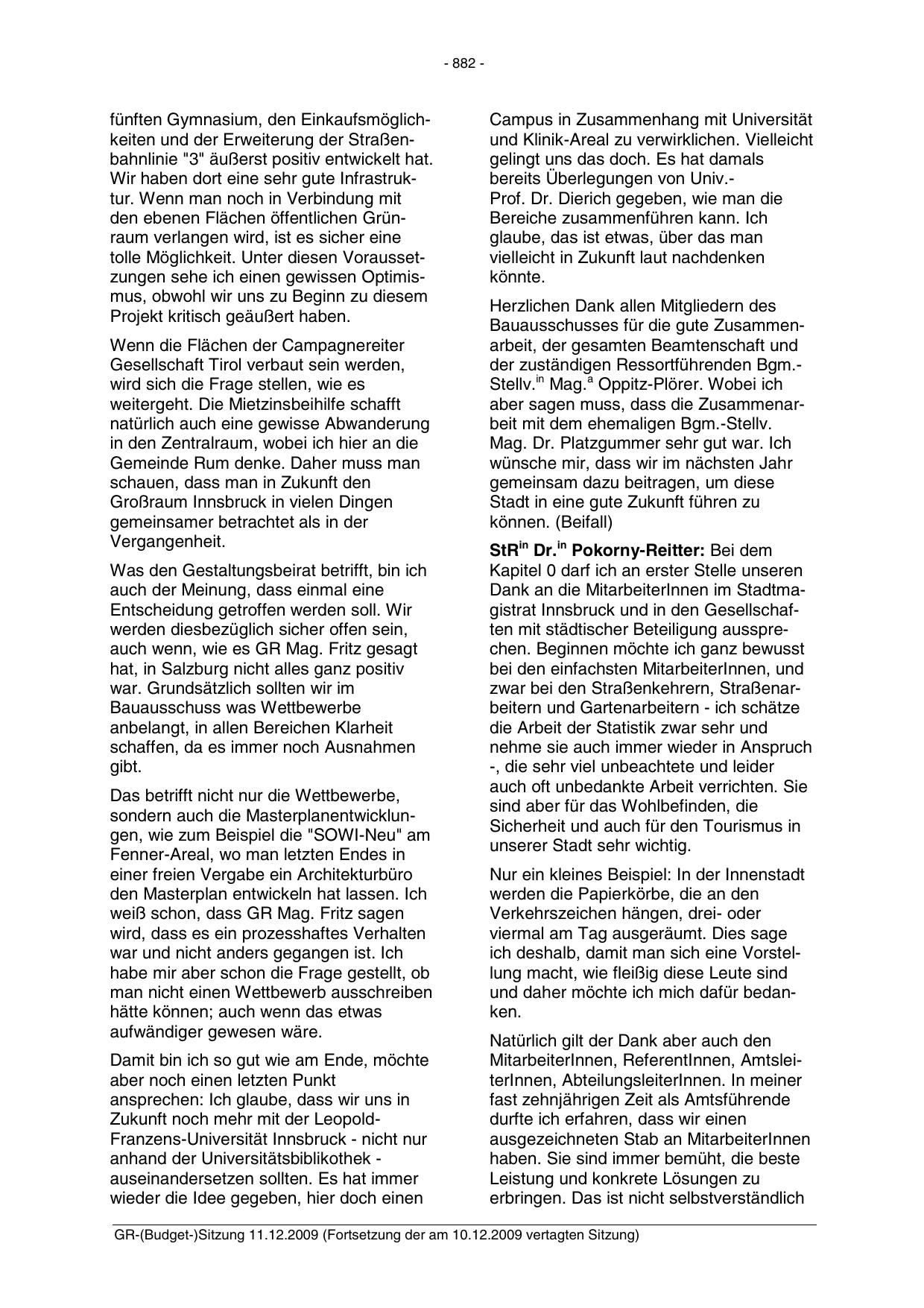 der zuständigen Ressortführenden Bgm.Stellv.in Mag.a Oppitz-Plörer. Wobei ich