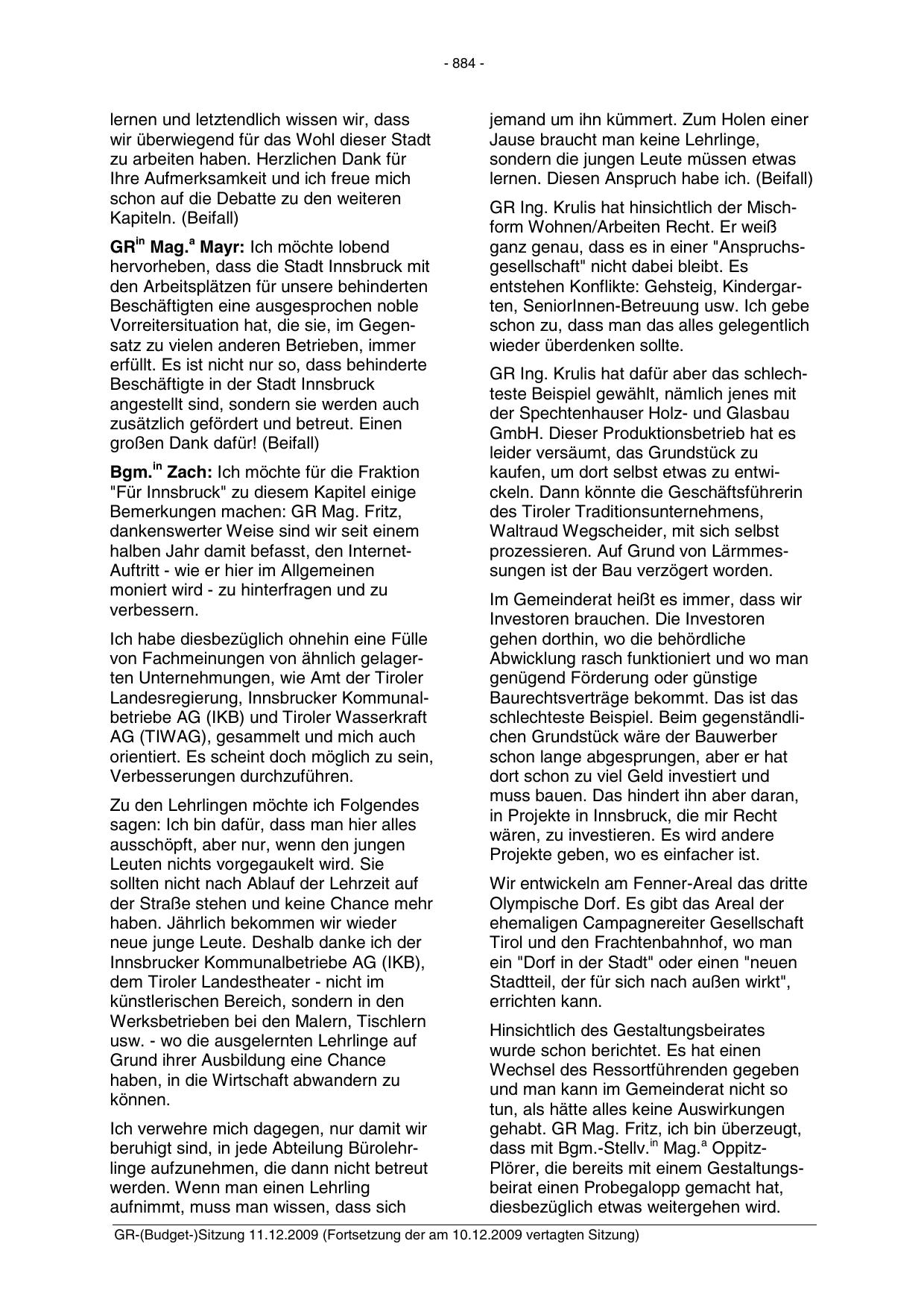 GR-(Budget-)Sitzung 11.12.2009 (Fortsetzung der am 10.12.2009 vertagten Sitzung)