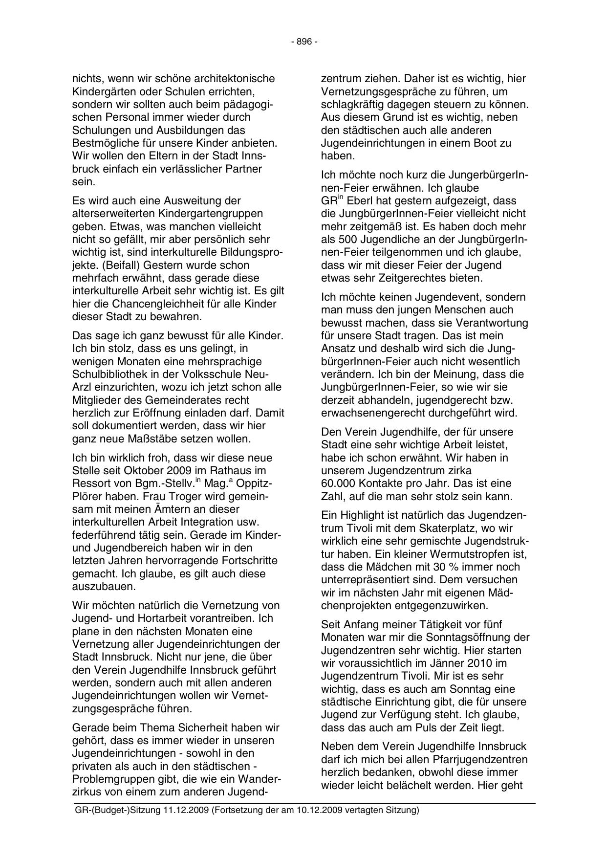 GR-(Budget-)Sitzung 11.12.2009 (Fortsetzung der am 10.12.2009 vertagten Sitzung)