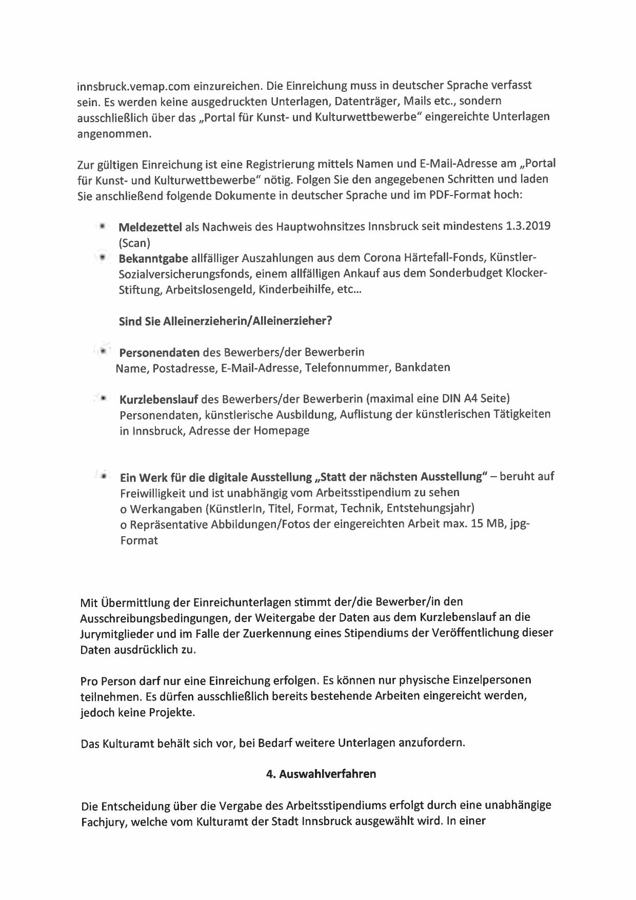 Fachjury, welche vom Kulturamt der Stadt Innsbruck ausgewählt wird. In einer