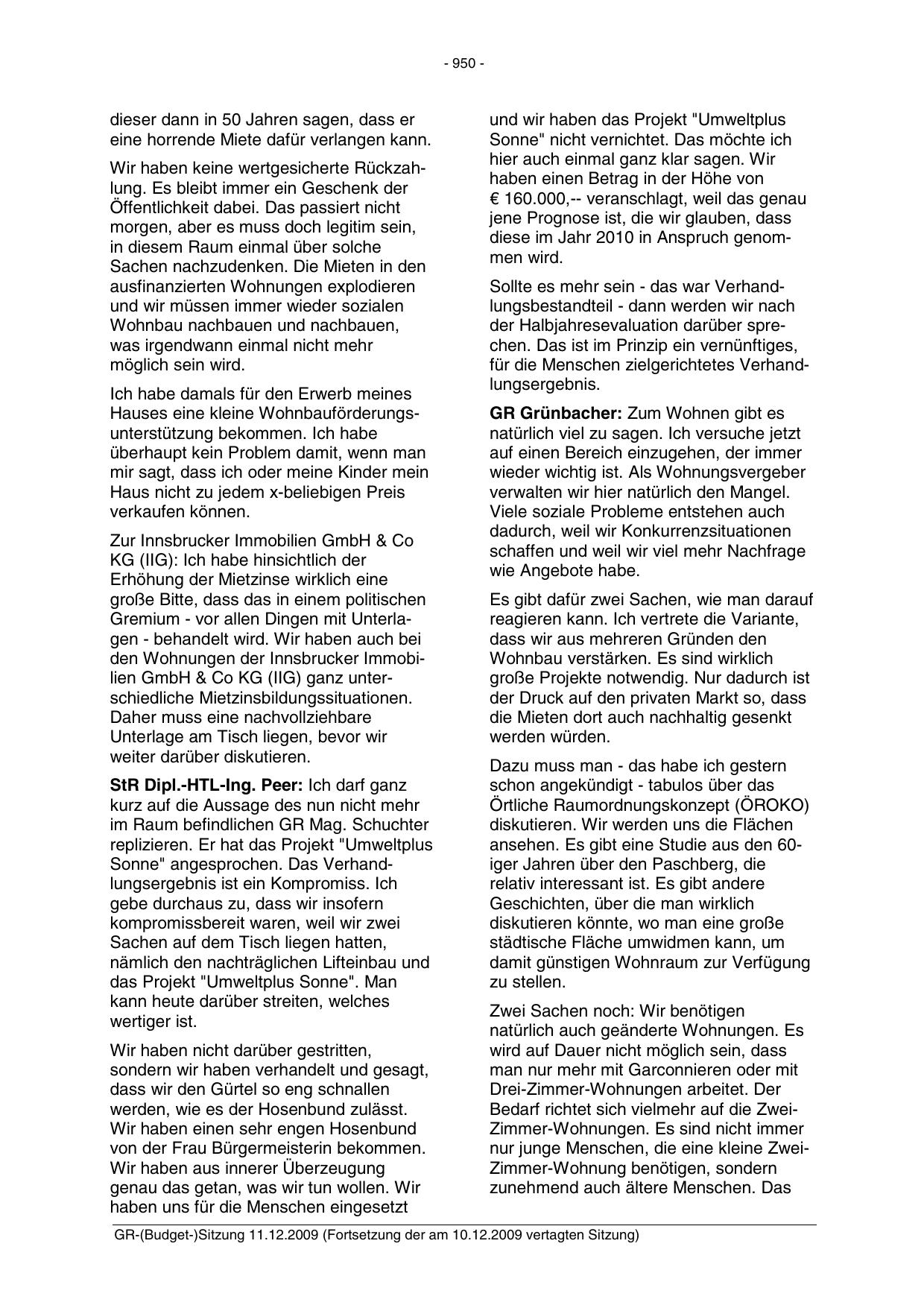 GR-(Budget-)Sitzung 11.12.2009 (Fortsetzung der am 10.12.2009 vertagten Sitzung)