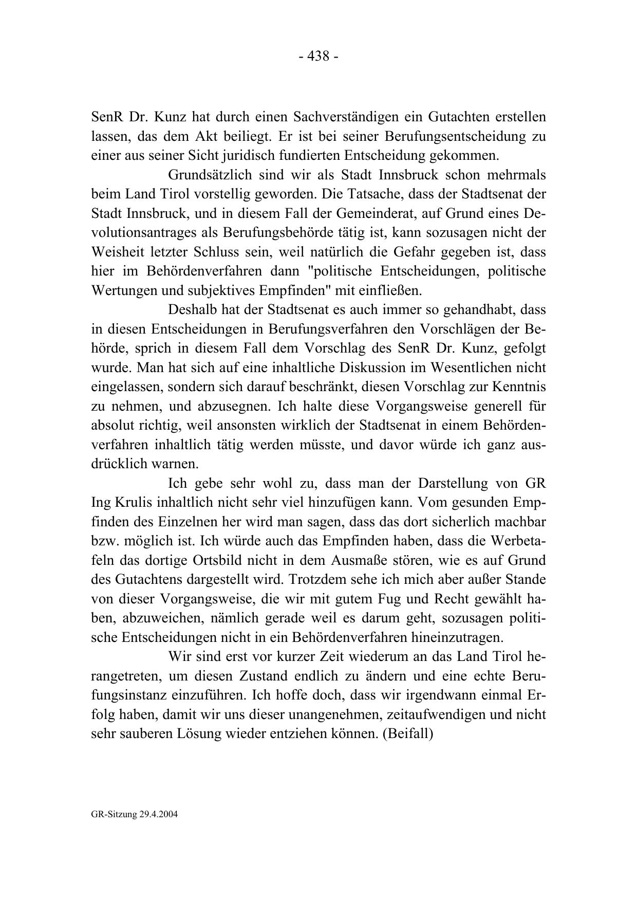 Wir sind erst vor kurzer Zeit wiederum an das Land Tirol herangetreten, um diesen Zustand endlich zu ändern und eine echte Berufungsinstanz einzuführen. Ich hoffe doch, dass wir irgendwann einmal Erfolg haben, damit wir uns dieser unangenehmen, zeitaufwendigen und nicht