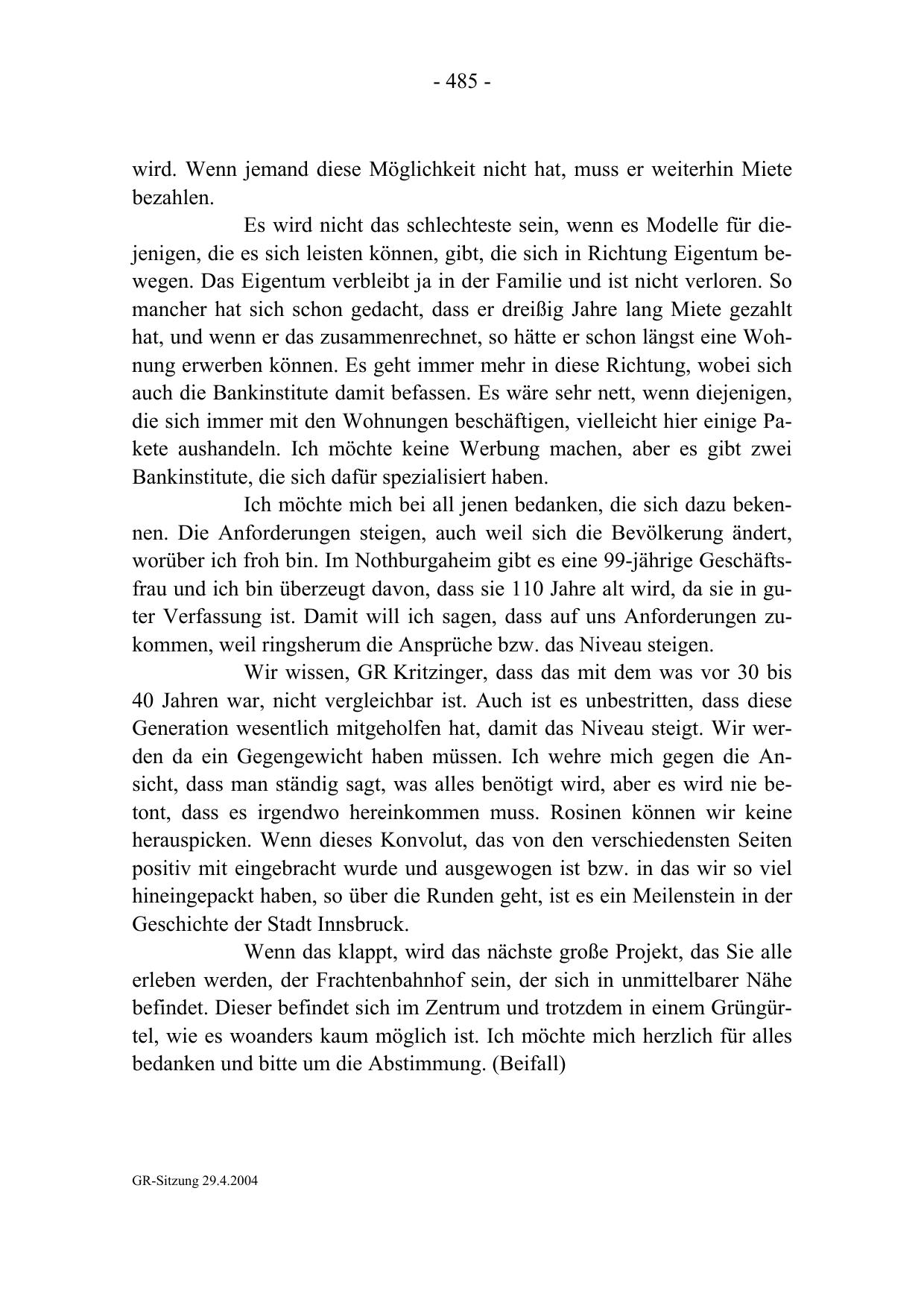Wir wissen, GR Kritzinger, dass das mit dem was vor 30 bis