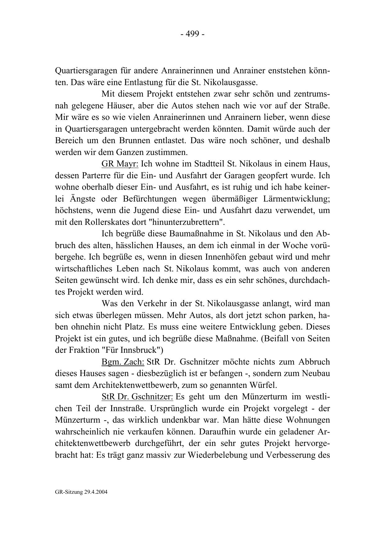 Bgm. Zach: StR Dr. Gschnitzer möchte nichts zum Abbruch