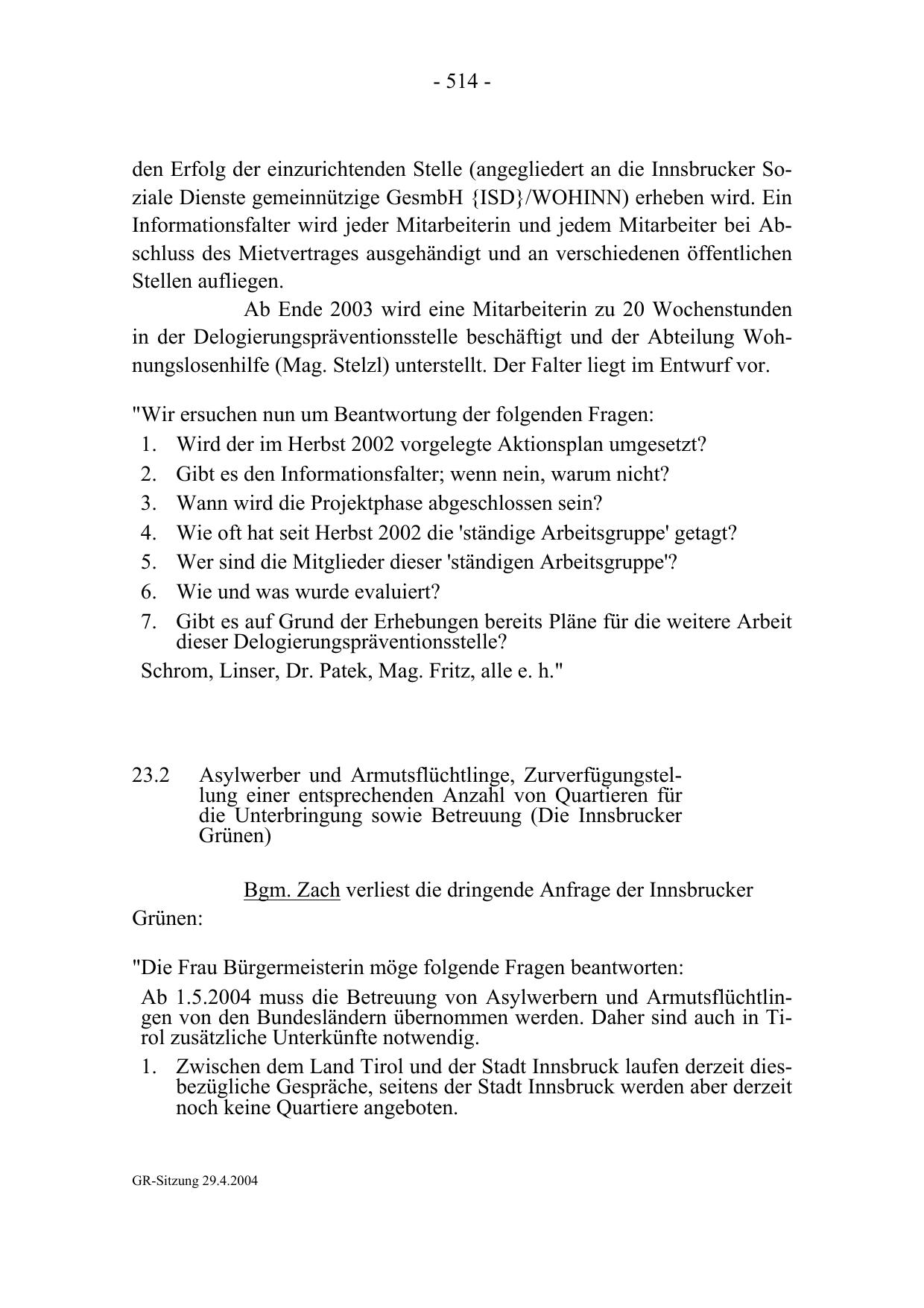 Bgm. Zach verliest die dringende Anfrage der Innsbrucker