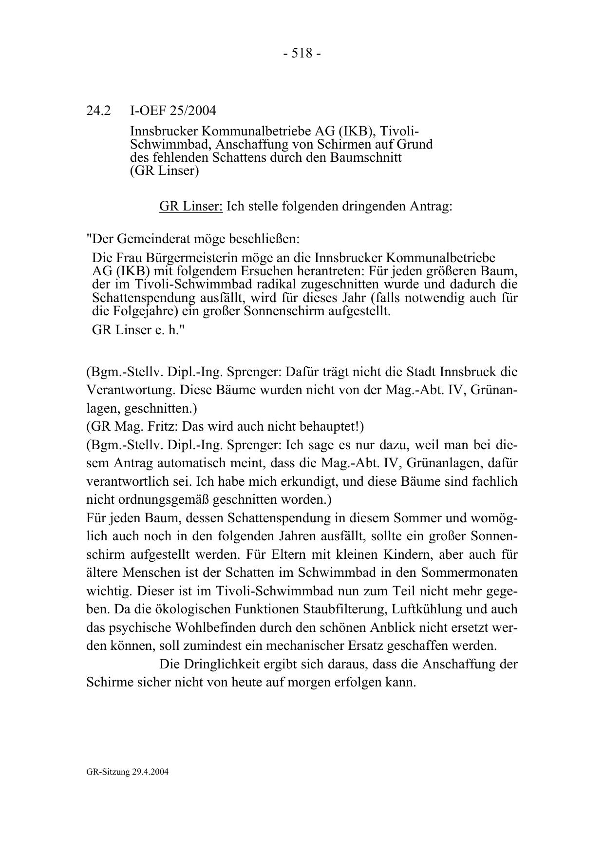 (Bgm.-Stellv. Dipl.-Ing. Sprenger: Dafür trägt nicht die Stadt Innsbruck die