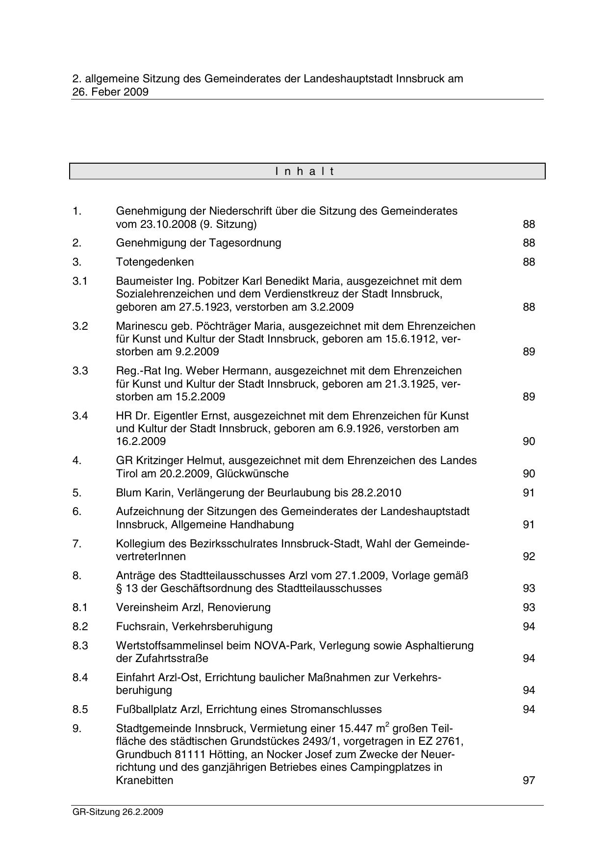 2. allgemeine Sitzung des Gemeinderates der Landeshauptstadt Innsbruck am