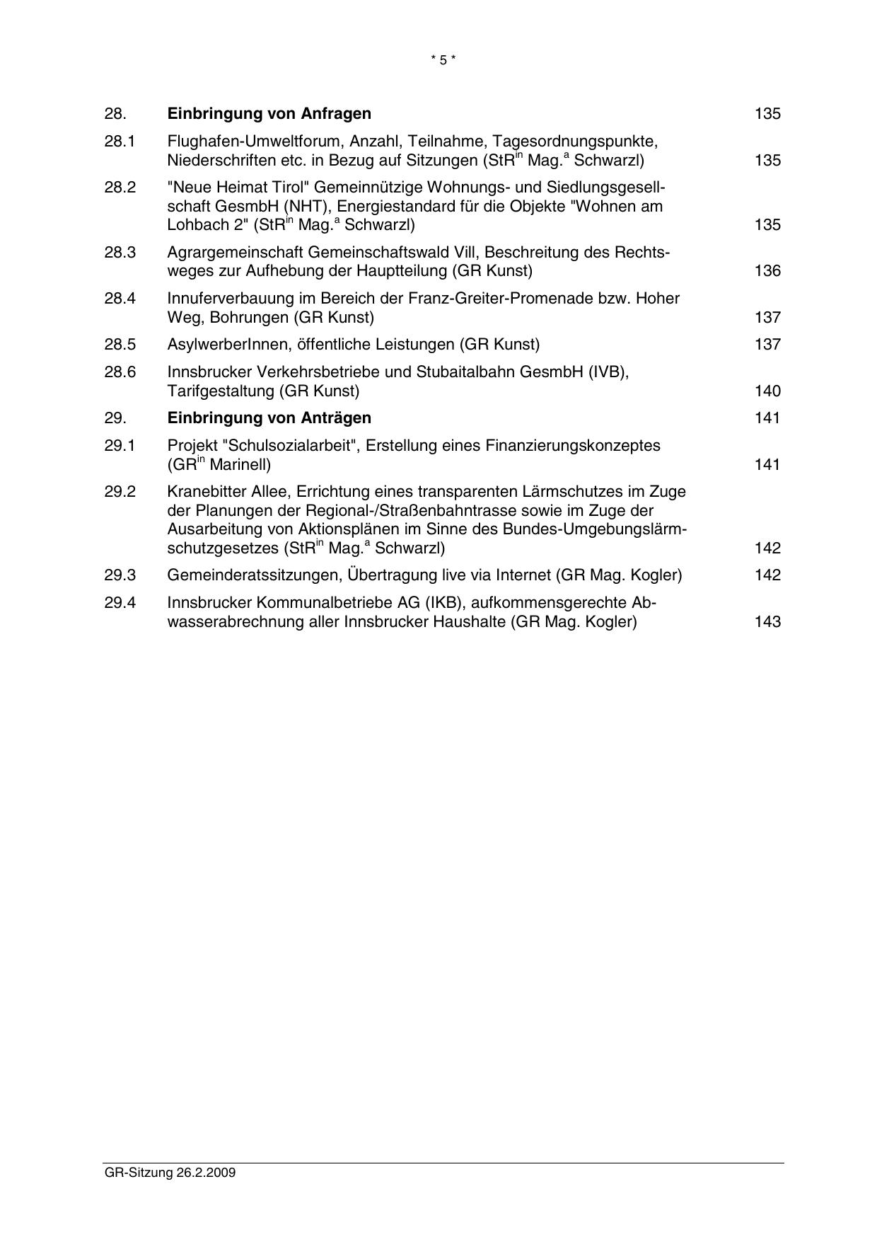 Niederschriften etc. in Bezug auf Sitzungen (StRin Mag.a Schwarzl)