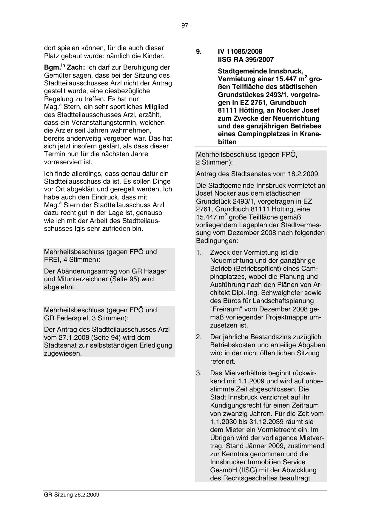 Bgm.in Zach: Ich darf zur Beruhigung der