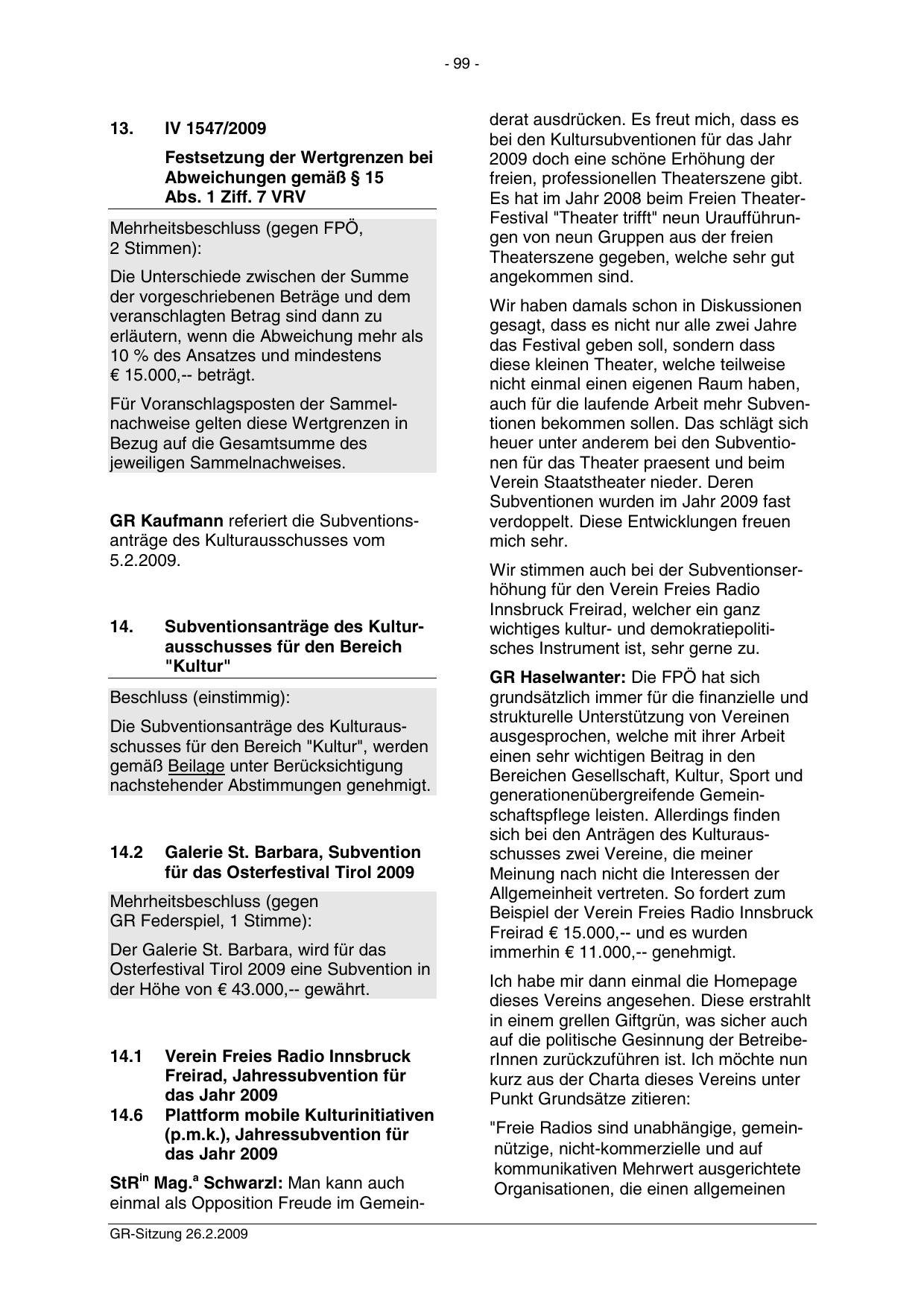einmal als Opposition Freude im GemeinGR-Sitzung 26.2.2009