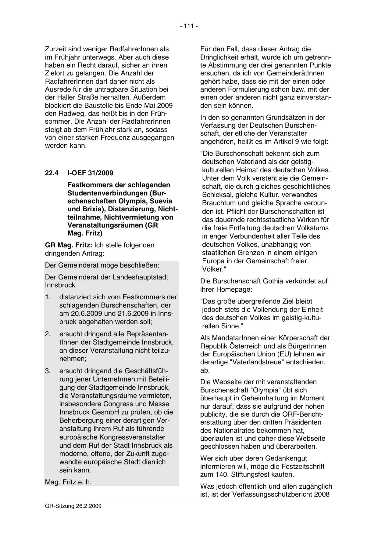 am 20.6.2009 und 21.6.2009 in Innsbruck abgehalten werden soll;
