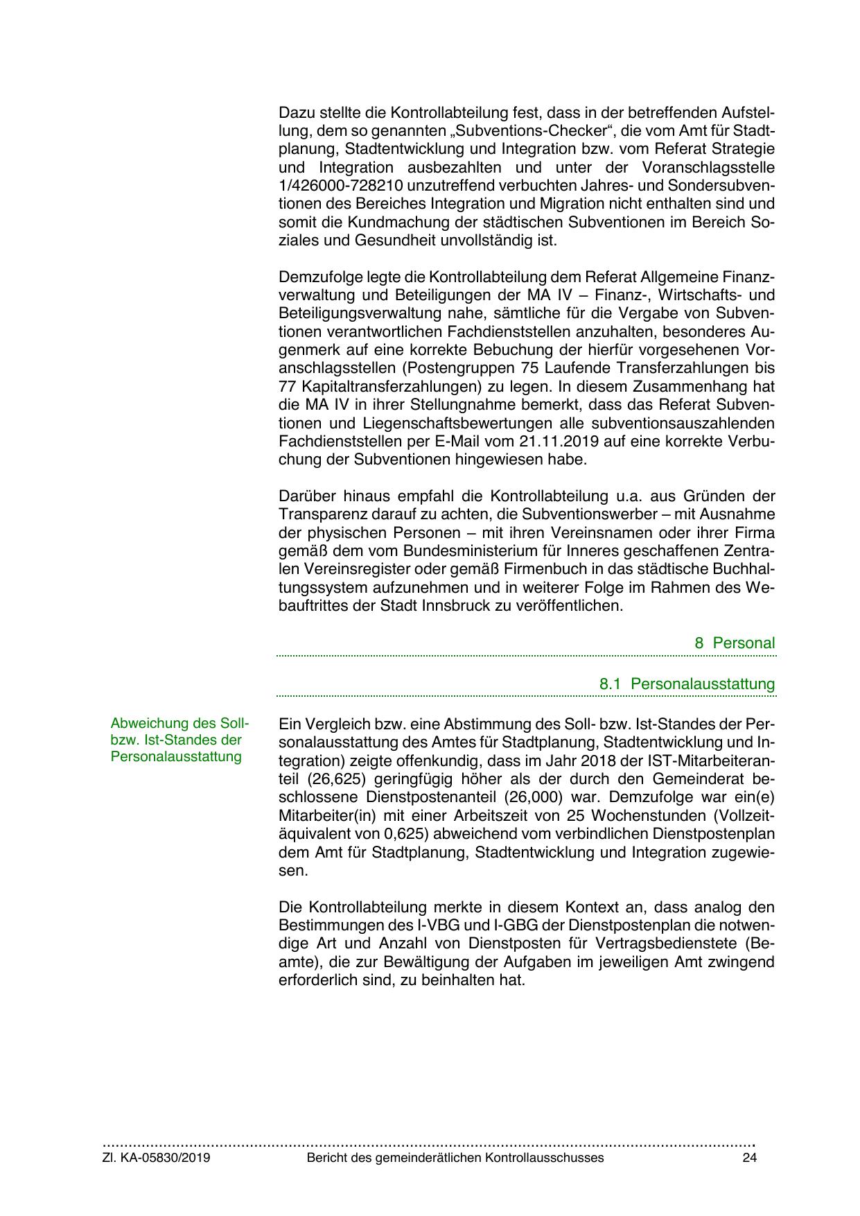 Ein Vergleich bzw. eine Abstimmung des Soll- bzw. Ist-Standes der Personalausstattung des Amtes für Stadtplanung, Stadtentwicklung und Integration) zeigte offenkundig, dass im Jahr 2018 der IST-Mitarbeiteranteil (26,625) geringfügig höher als der durch den Gemeinderat beschlossene Dienstpostenanteil (26,000) war. Demzufolge war ein(e)