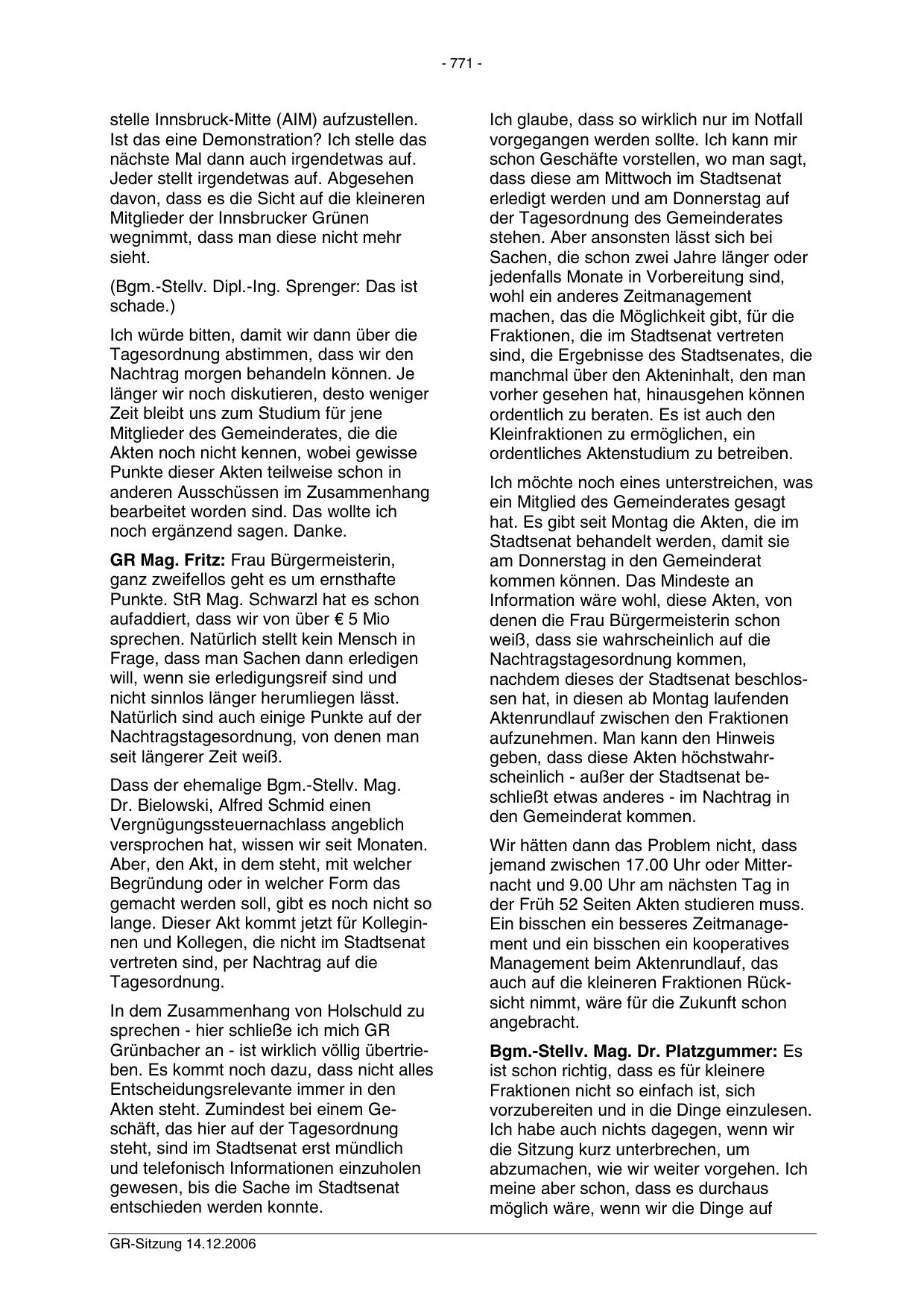 Bgm.-Stellv. Mag. Dr. Platzgummer: Es