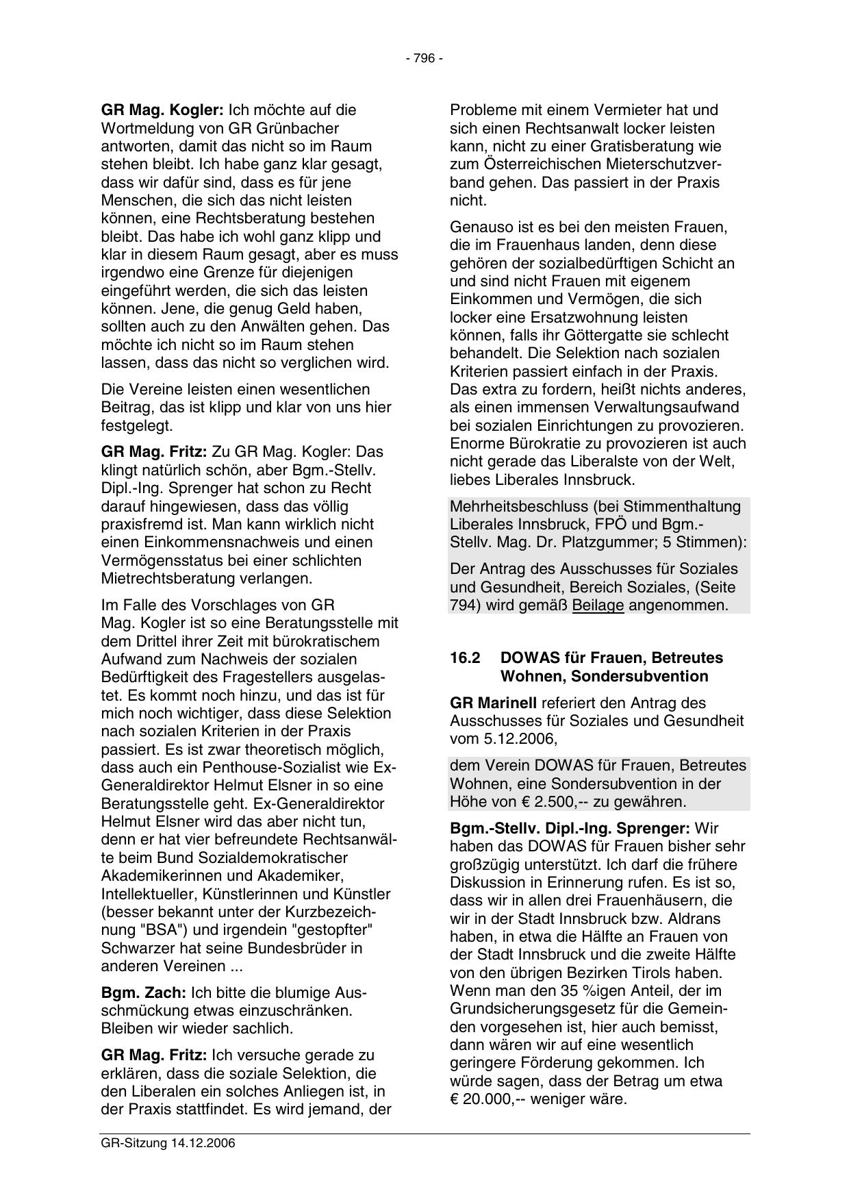 Liberales Innsbruck, FPÖ und Bgm.Stellv. Mag. Dr. Platzgummer; 5 Stimmen):