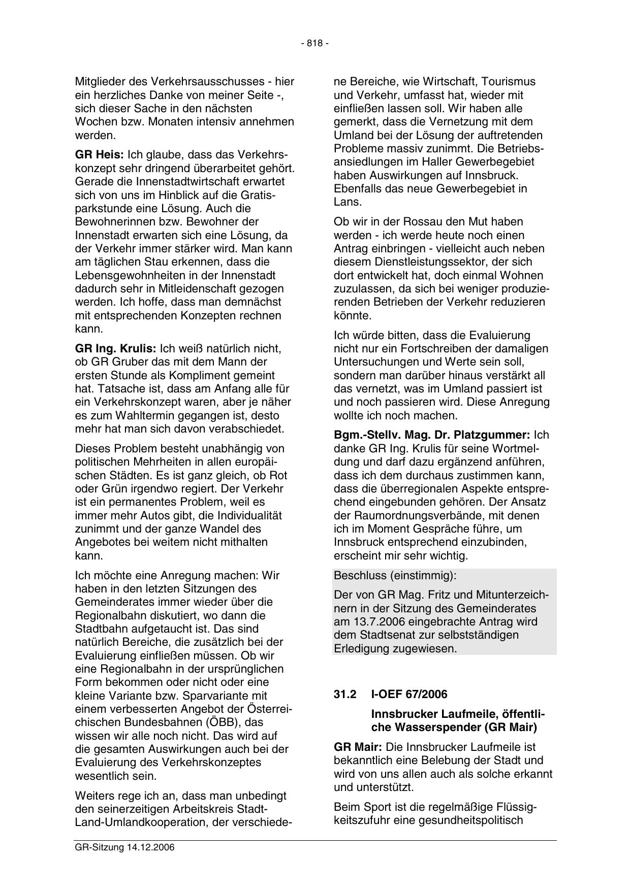 den seinerzeitigen Arbeitskreis StadtLand-Umlandkooperation, der verschiedeGR-Sitzung 14.12.2006
