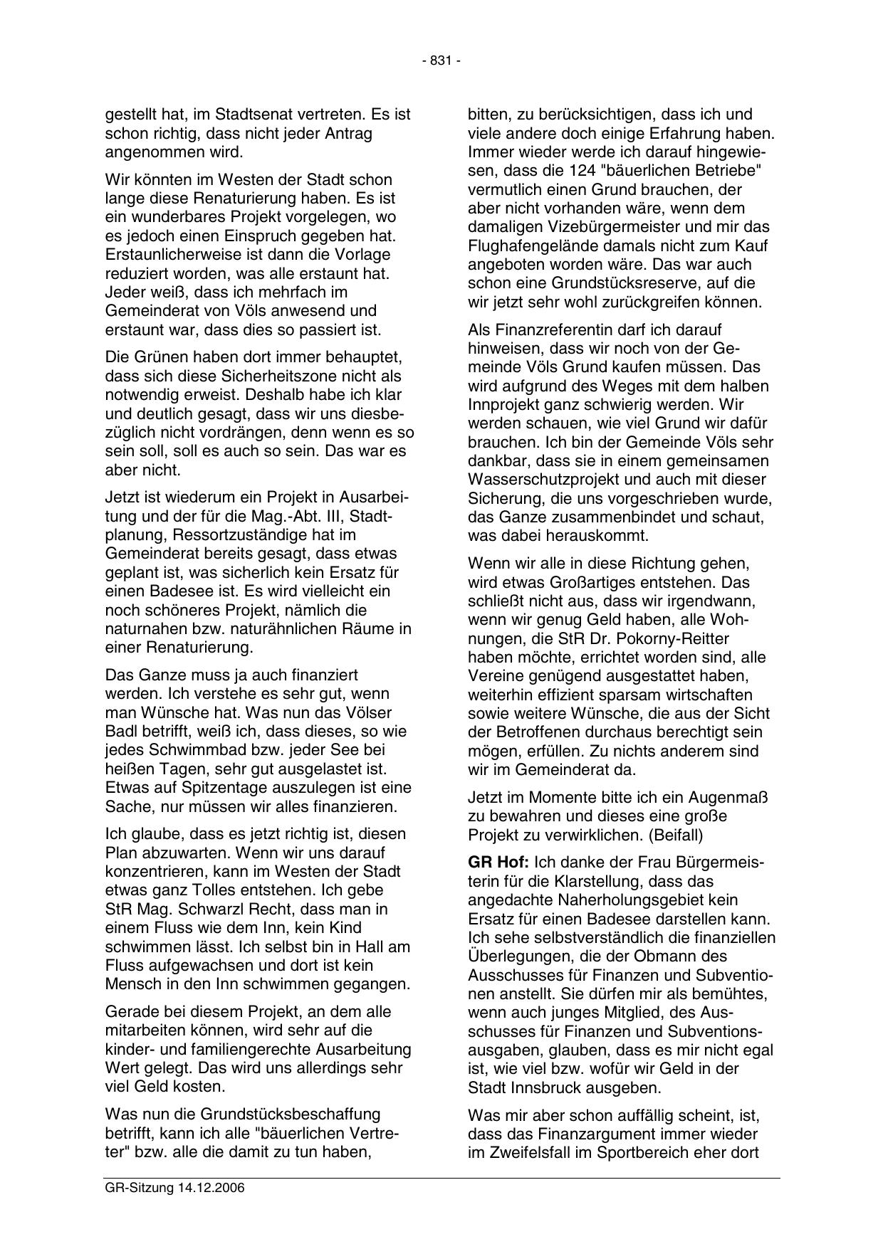 GR Hof: Ich danke der Frau Bürgermeisterin für die Klarstellung, dass das