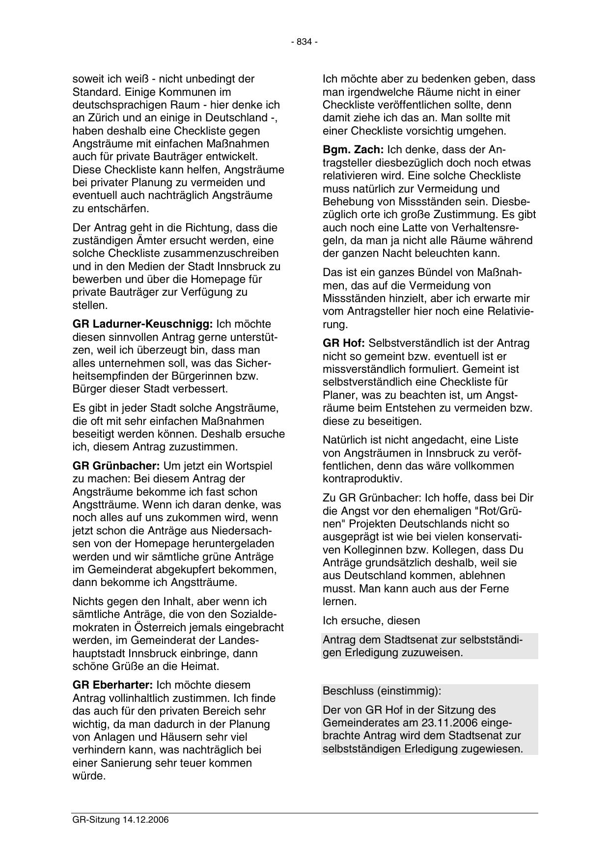 Gemeinderates am 23.11.2006 eingebrachte Antrag wird dem Stadtsenat zur