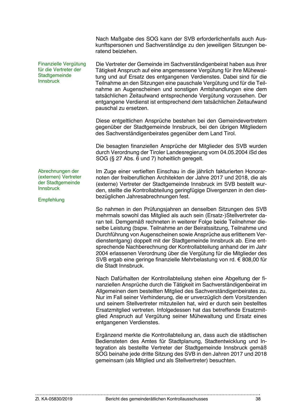 (externe) Vertreter der Stadtgemeinde Innsbruck im SVB bestellt wurden, stellte die Kontrollabteilung geringfügige Divergenzen in den diesbezüglichen Jahresabrechnungen fest.