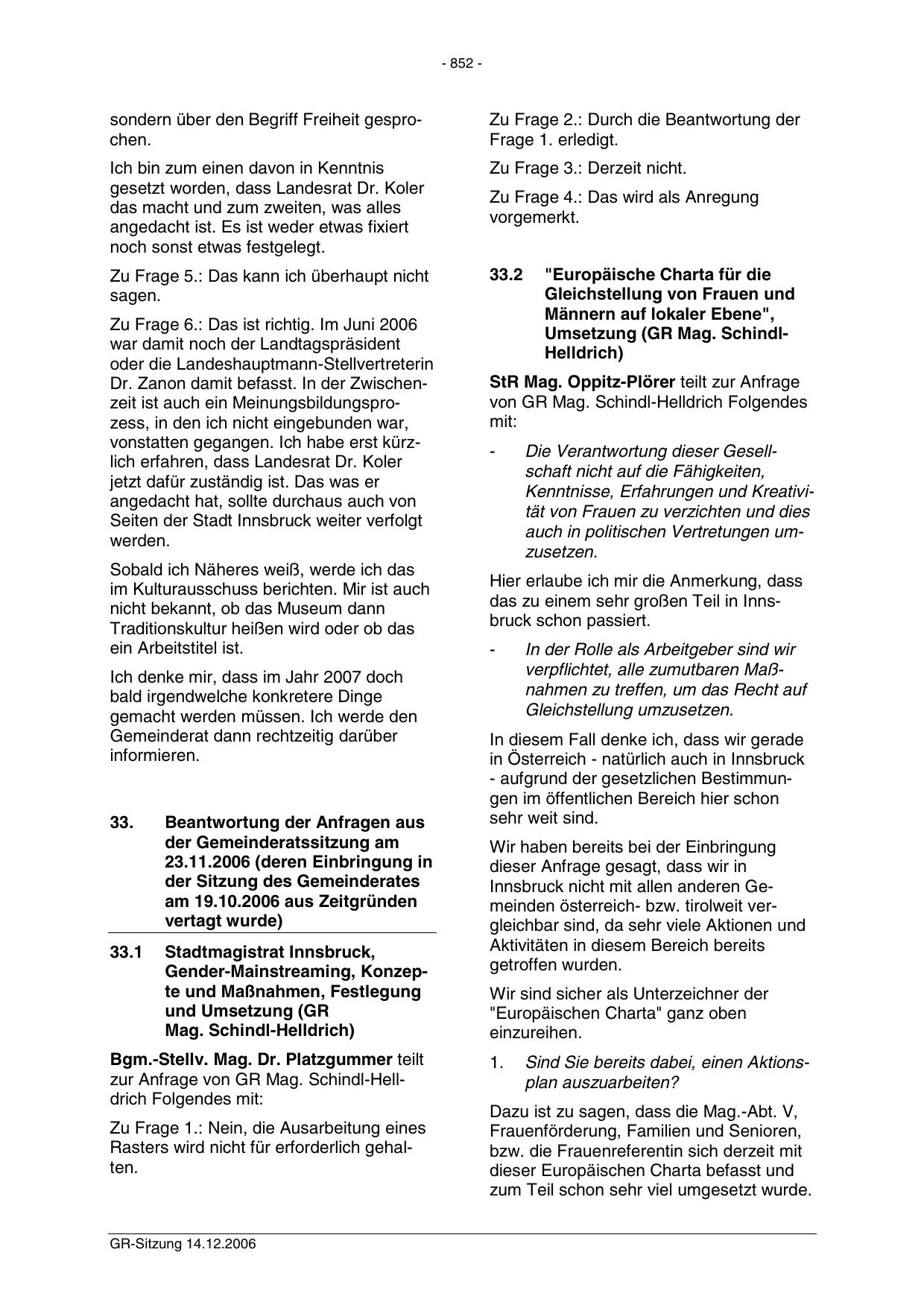 StR Mag. Oppitz-Plörer teilt zur Anfrage