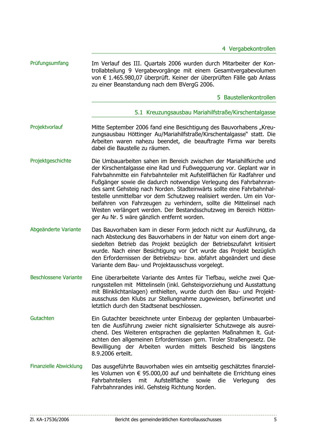 Im Verlauf des III. Quartals 2006 wurden durch Mitarbeiter der Kontrollabteilung 9 Vergabevorgänge mit einem Gesamtvergabevolumen