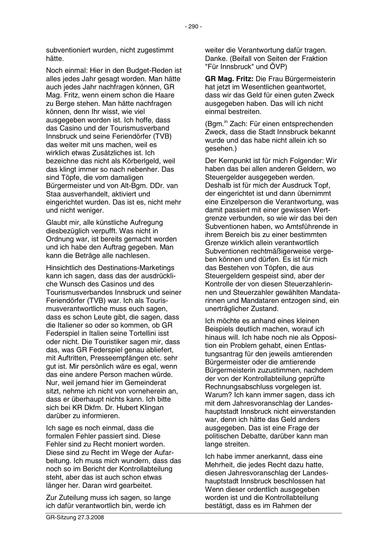 mit dem Jahresvoranschlag der Landeshauptstadt Innsbruck nicht einverstanden