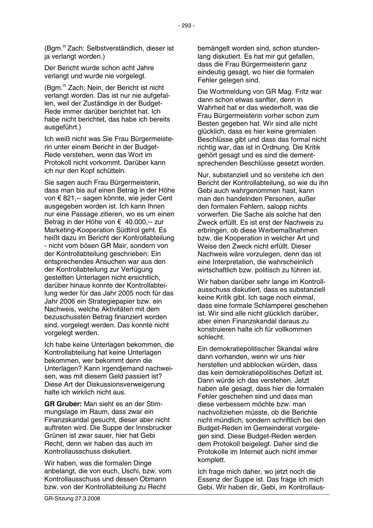 (Bgm.in Zach: Nein, der Bericht ist nicht