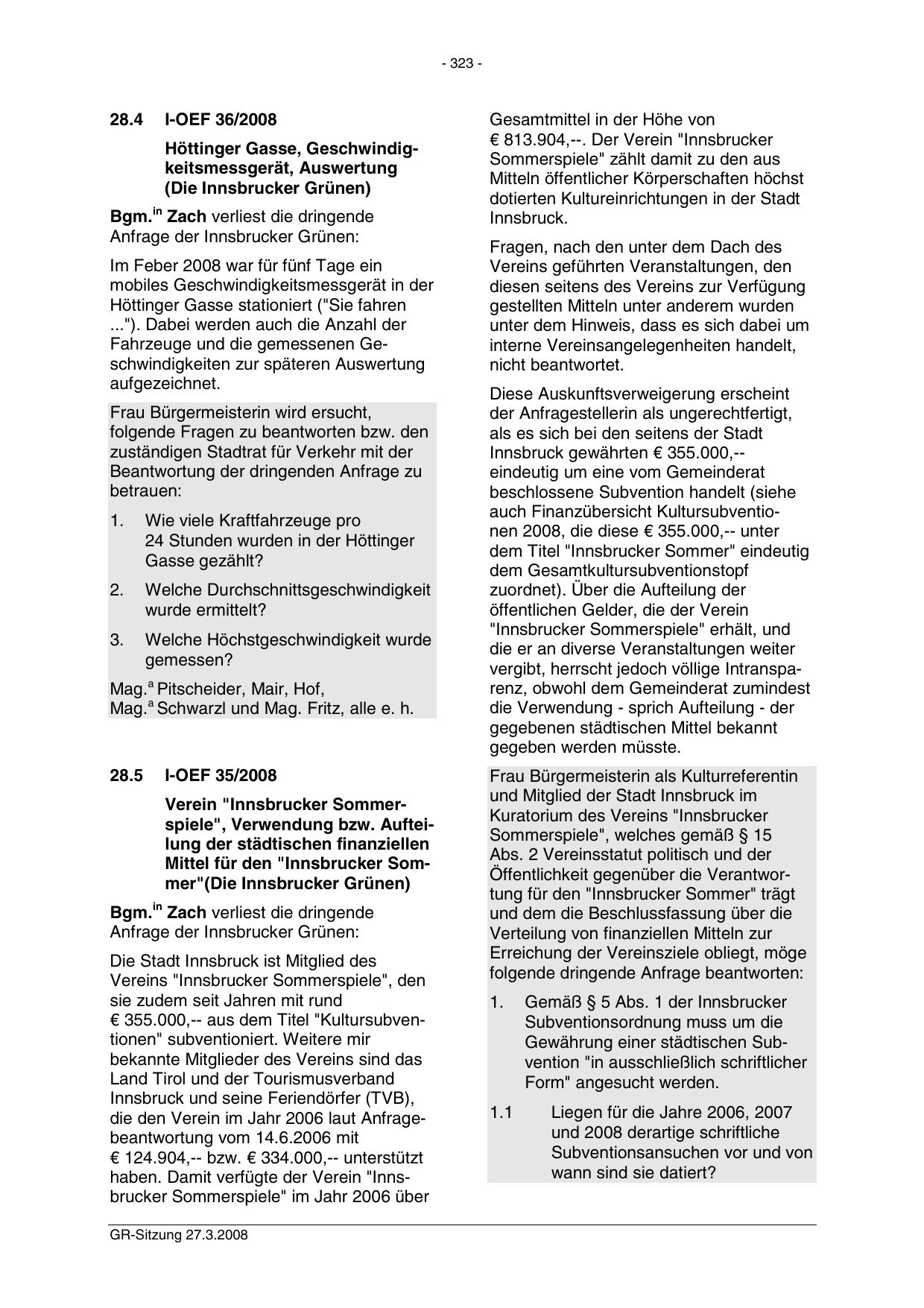 Innsbruck gewährten € 355.000,-eindeutig um eine vom Gemeinderat