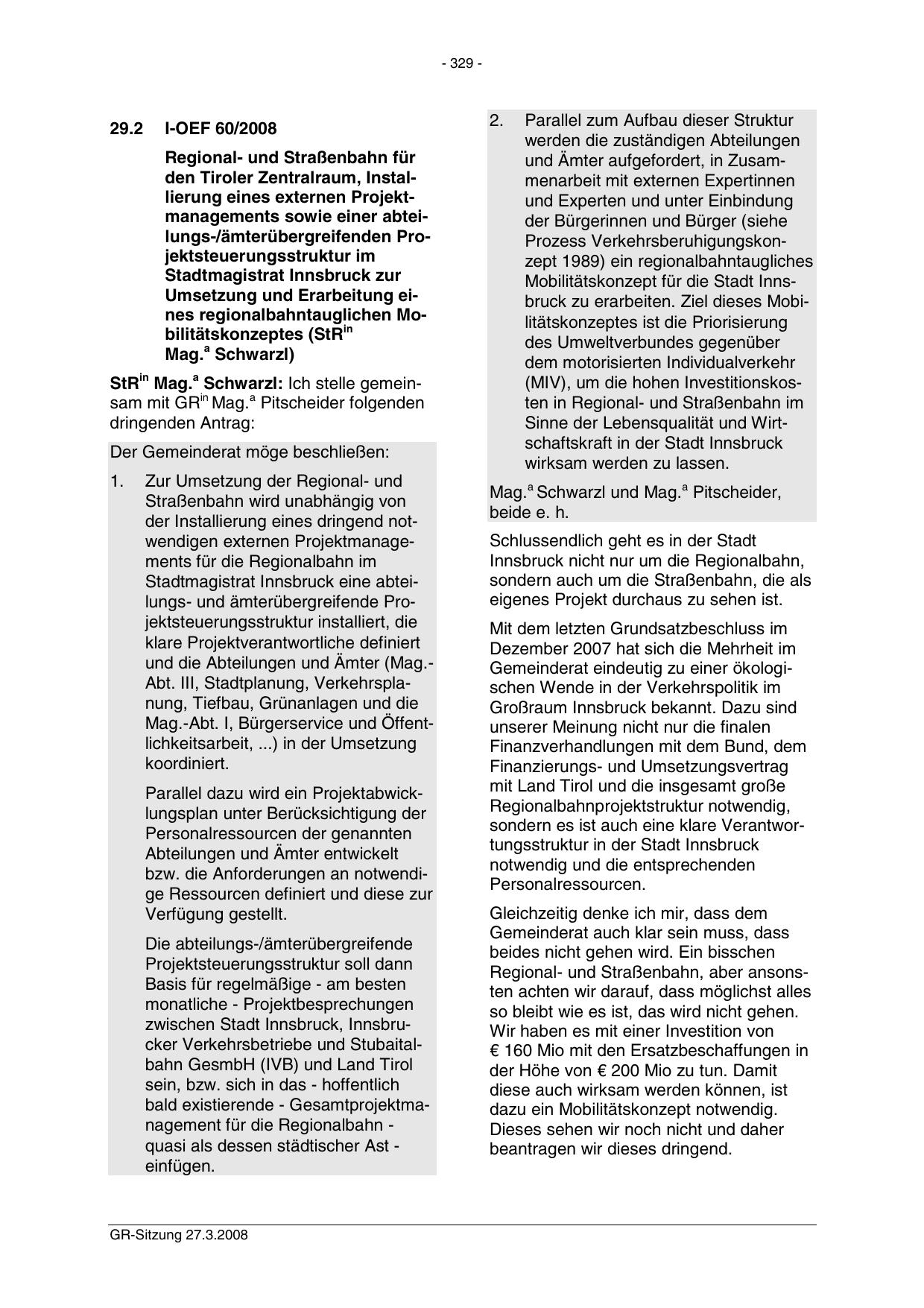 StRin Mag.a Schwarzl: Ich stelle gemeinsam mit GRin Mag.a Pitscheider folgenden