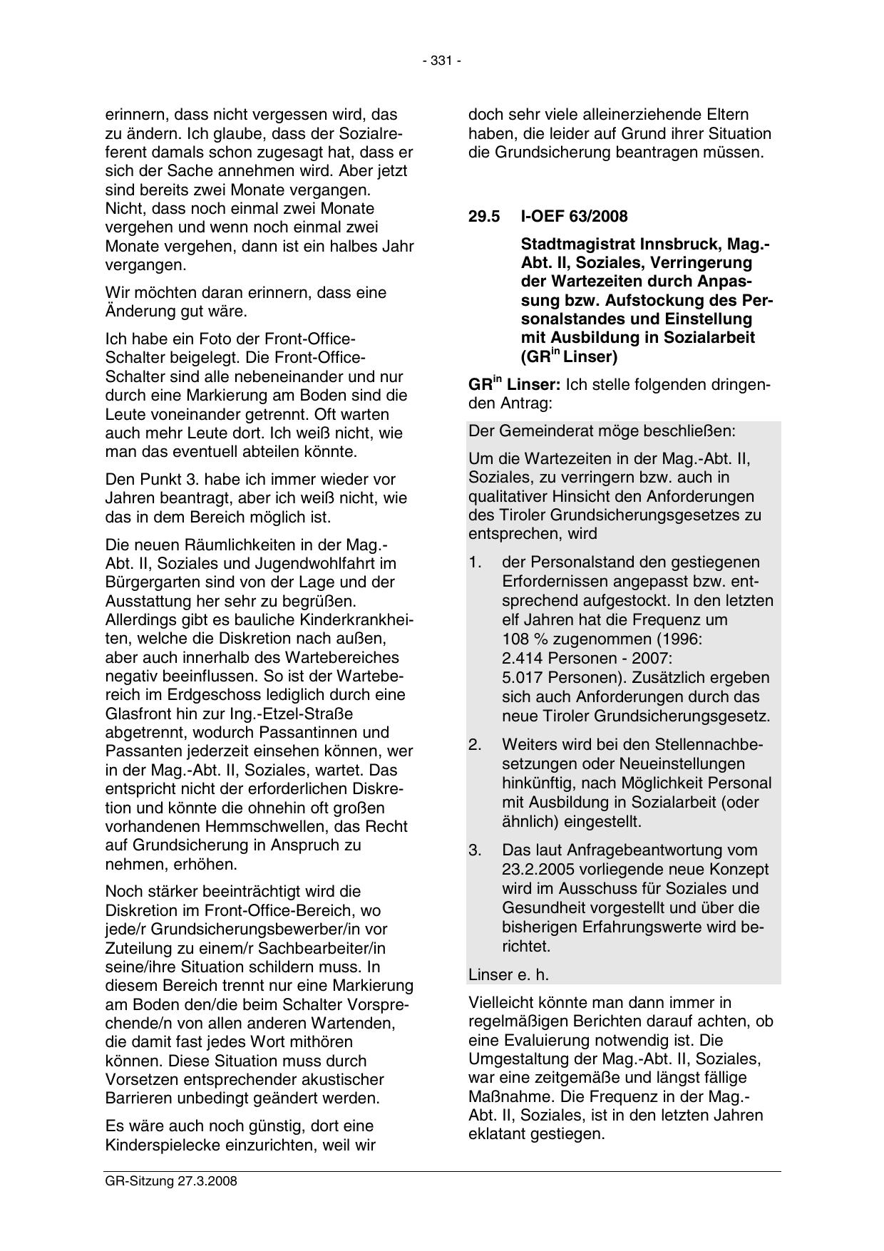 in der Mag.-Abt. II, Soziales, wartet. Das