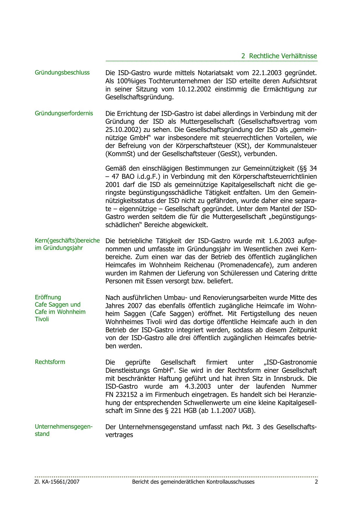 Die ISD-Gastro wurde mittels Notariatsakt vom 22.1.2003 gegründet.