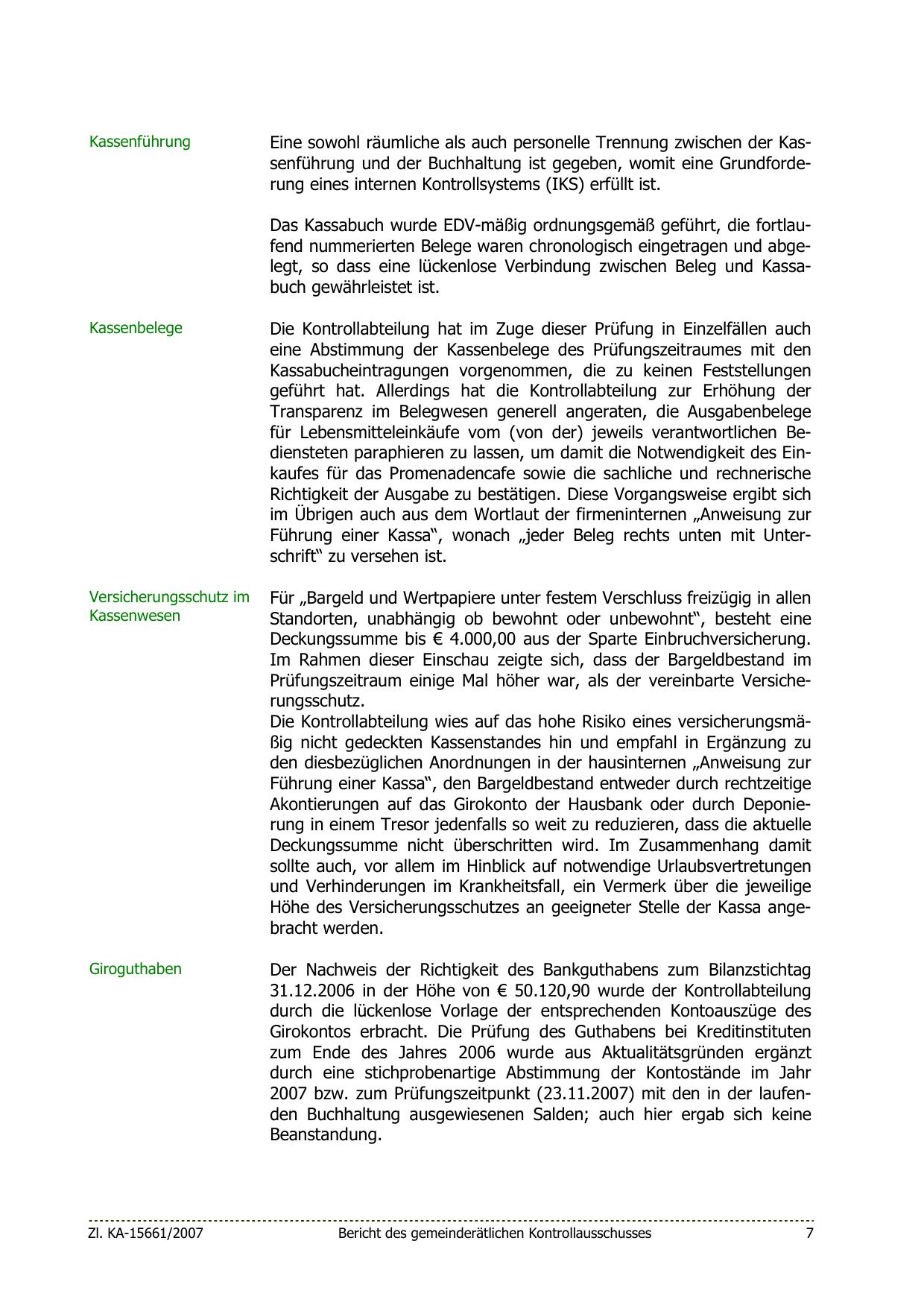 31.12.2006 in der Höhe von € 50.120,90 wurde der Kontrollabteilung
