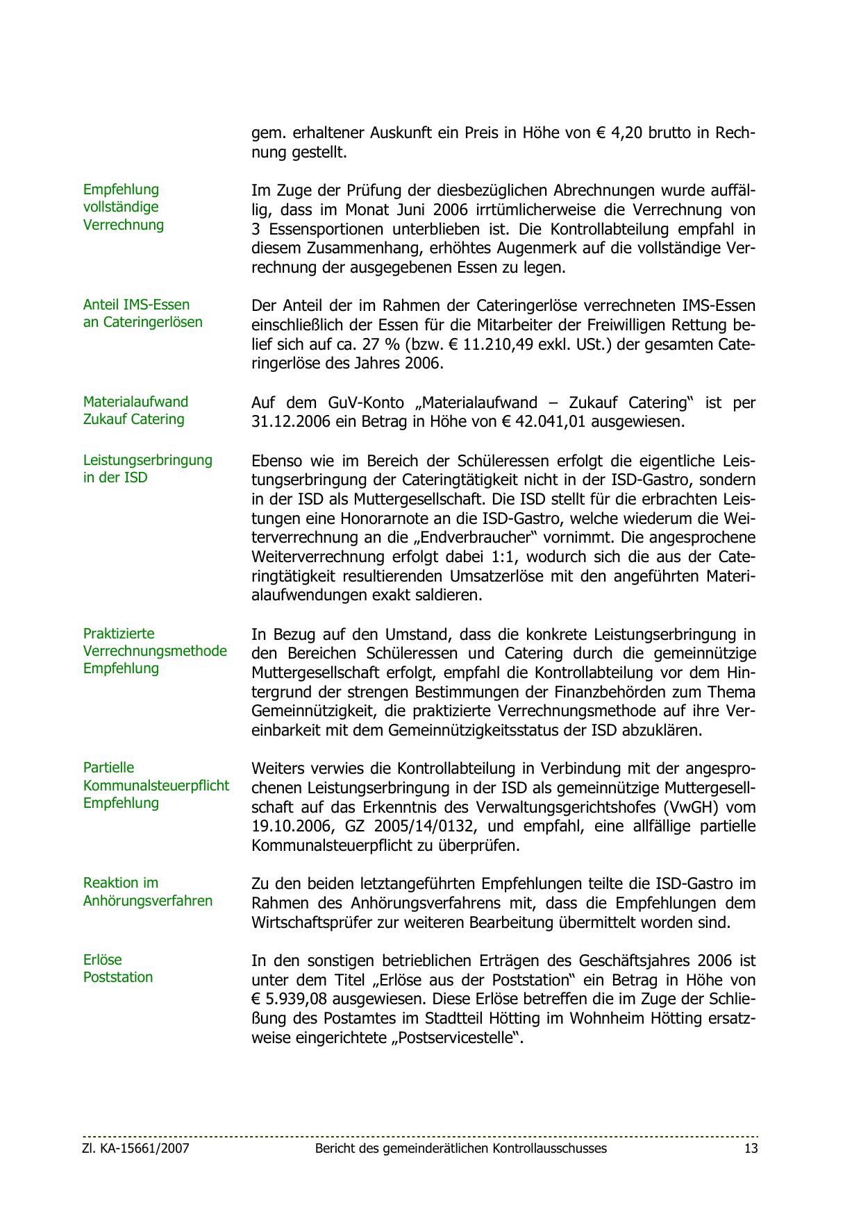 einschließlich der Essen für die Mitarbeiter der Freiwilligen Rettung belief sich auf ca. 27 % (bzw. € 11.210,49 exkl. USt.) der gesamten Cateringerlöse des Jahres 2006.