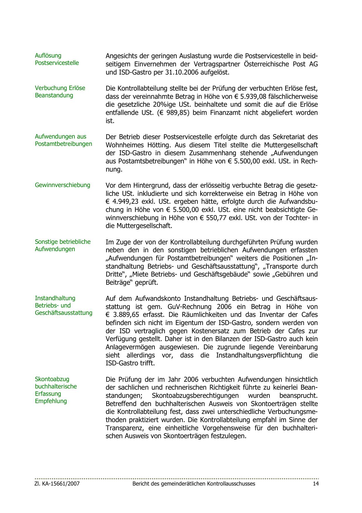 Im Zuge der von der Kontrollabteilung durchgeführten Prüfung wurden