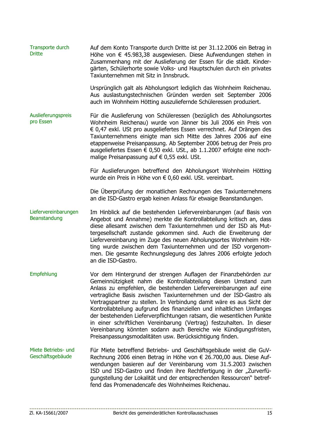 Liefervereinbarung im Zuge des neuen Abholungsortes Wohnheim Hötting wurde zwischen dem Taxiunternehmen und der ISD vorgenommen. Die gesamte Rechnungslegung des Jahres 2006 erfolgte jedoch