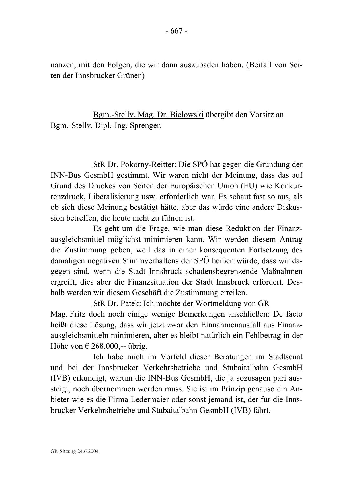 (IVB) erkundigt, warum die INN-Bus GesmbH, die ja sozusagen pari aussteigt, noch übernommen werden muss. Sie ist im Prinzip genauso ein Anbieter wie es die Firma Ledermaier oder sonst jemand ist, der für die Innsbrucker Verkehrsbetriebe und Stubaitalbahn GesmbH (IVB) fährt.